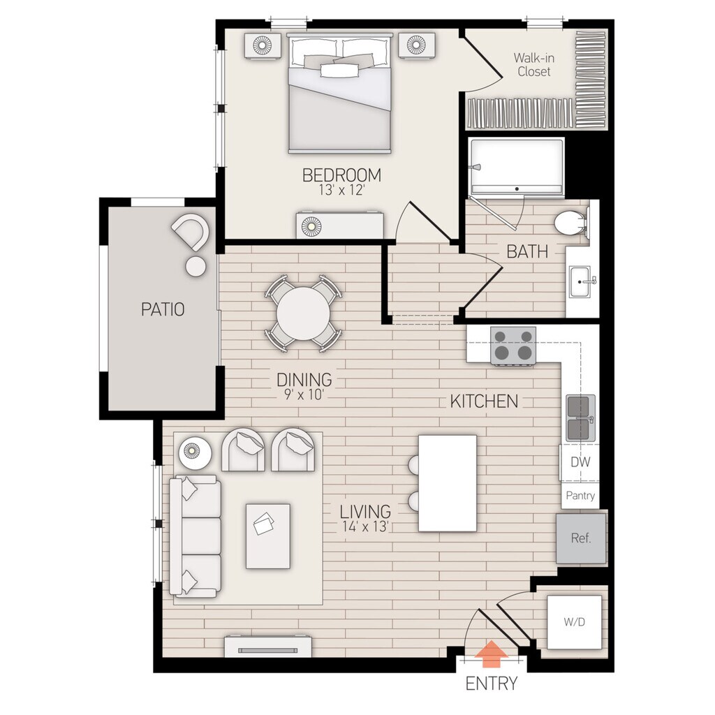 Apartment Model: Plan 7From $2,9201 Bedroom, 1 Bath, 754 sq ftAvailable NowFloor plans are artist's rendering. All dimensions are approximate. Actual product and specifications may vary in dimension or detail. Not all features are available in every rental home. Please see a representative for details.