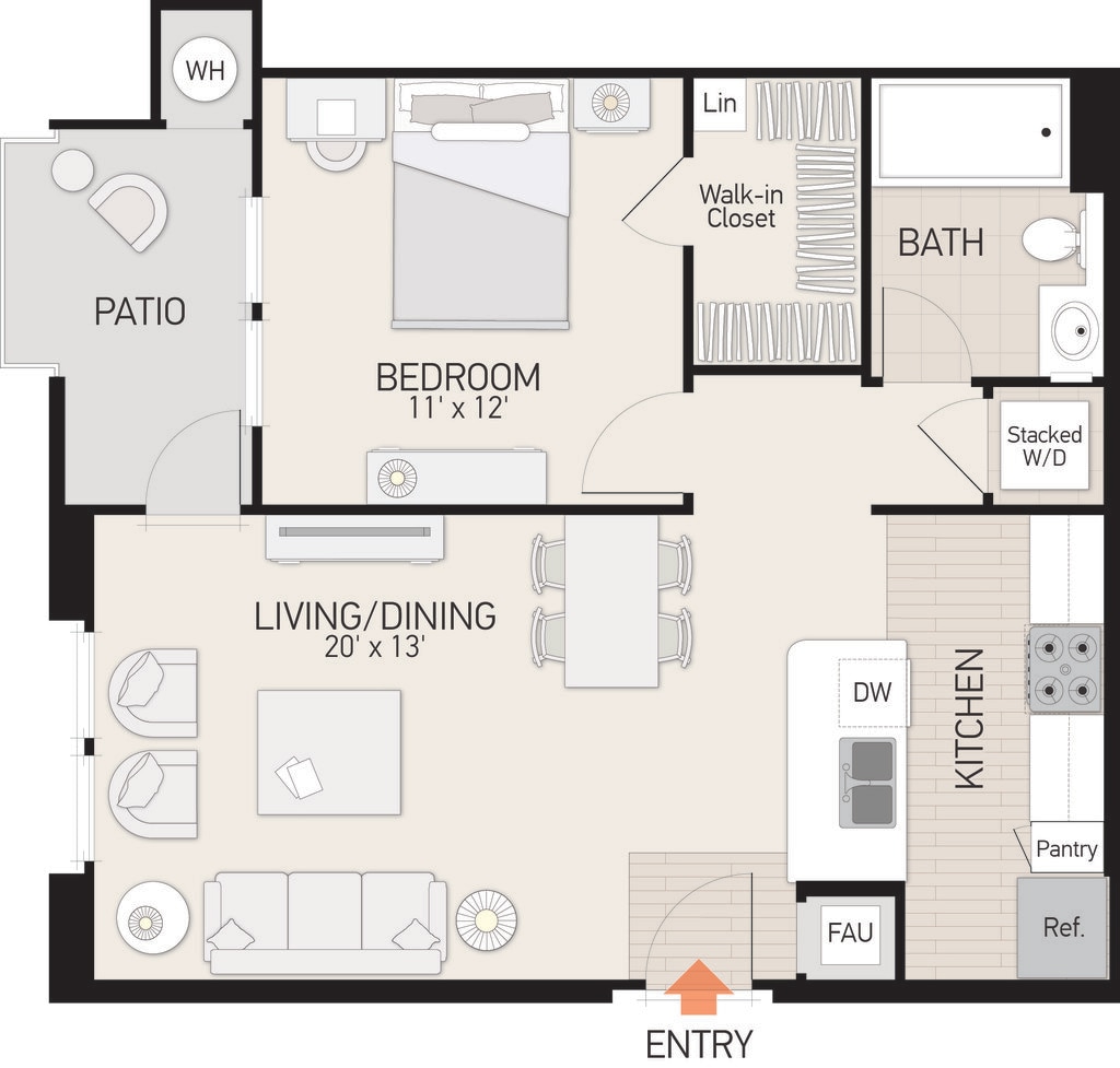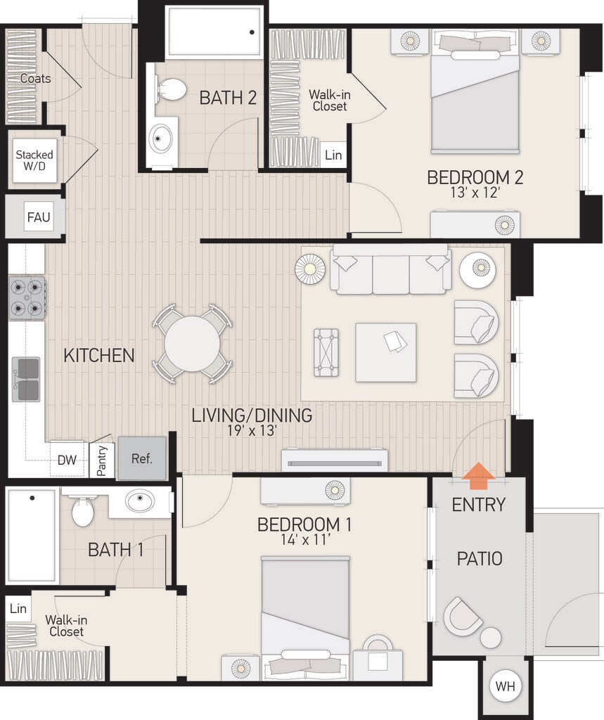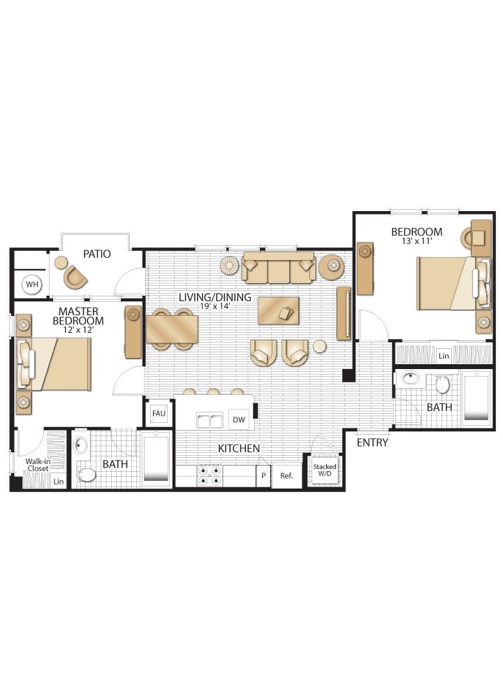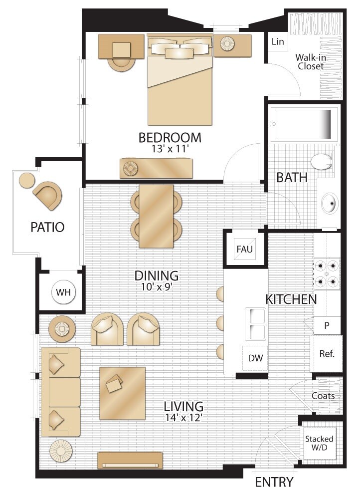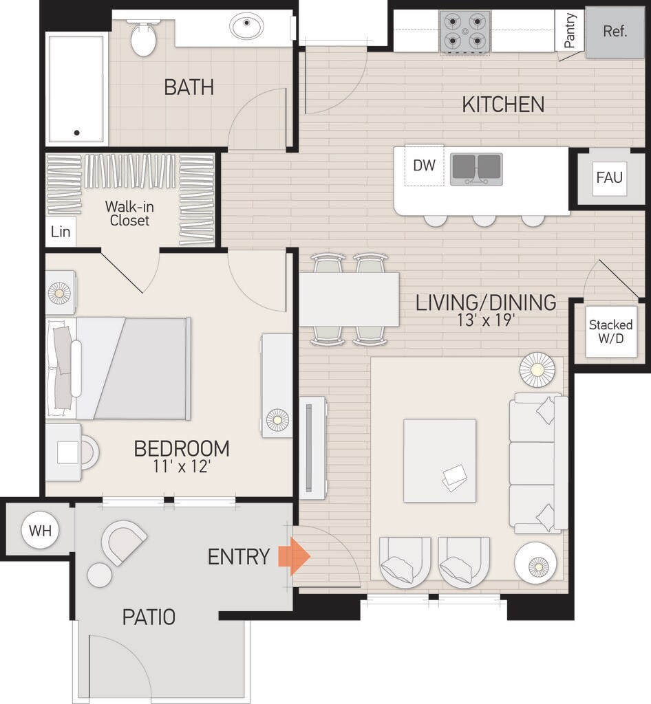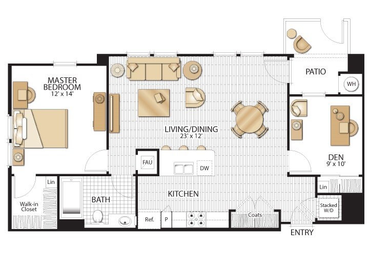 Apartment Model: Plan 6From $2,8951 Bedroom, 1 Bath, 752 sq ftAvailable Now![]()