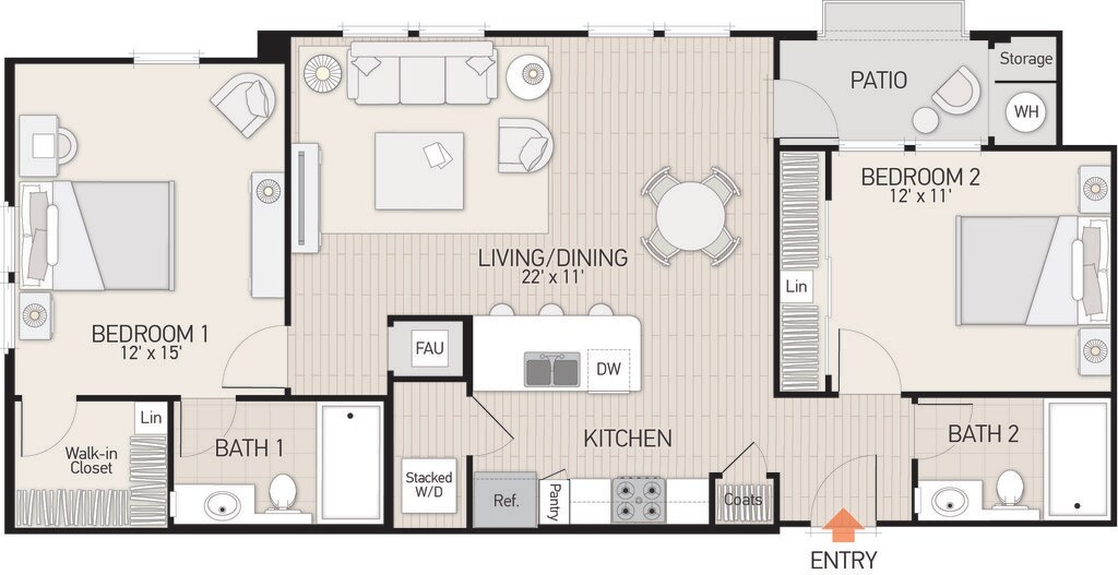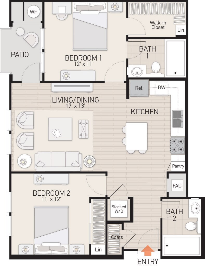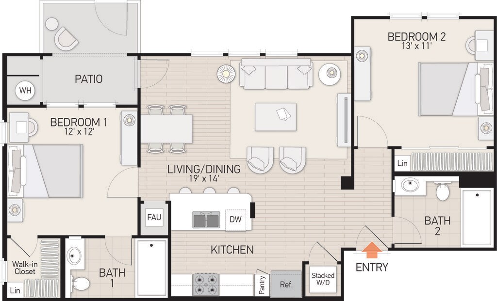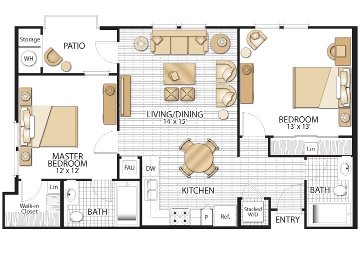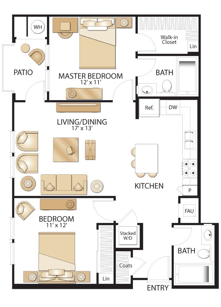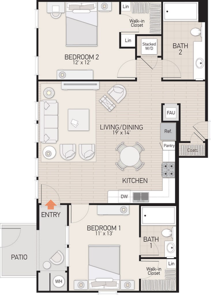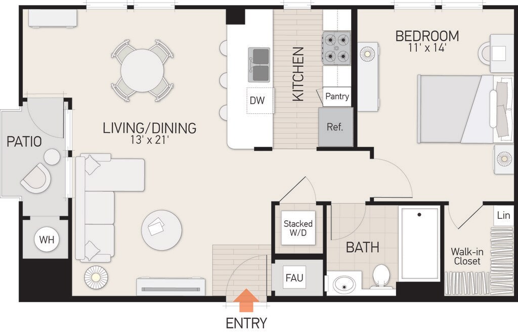 Apartment Model: Plan 6From $2,8951 Bedroom, 1 Bath, 752 sq ftAvailable Now![]()