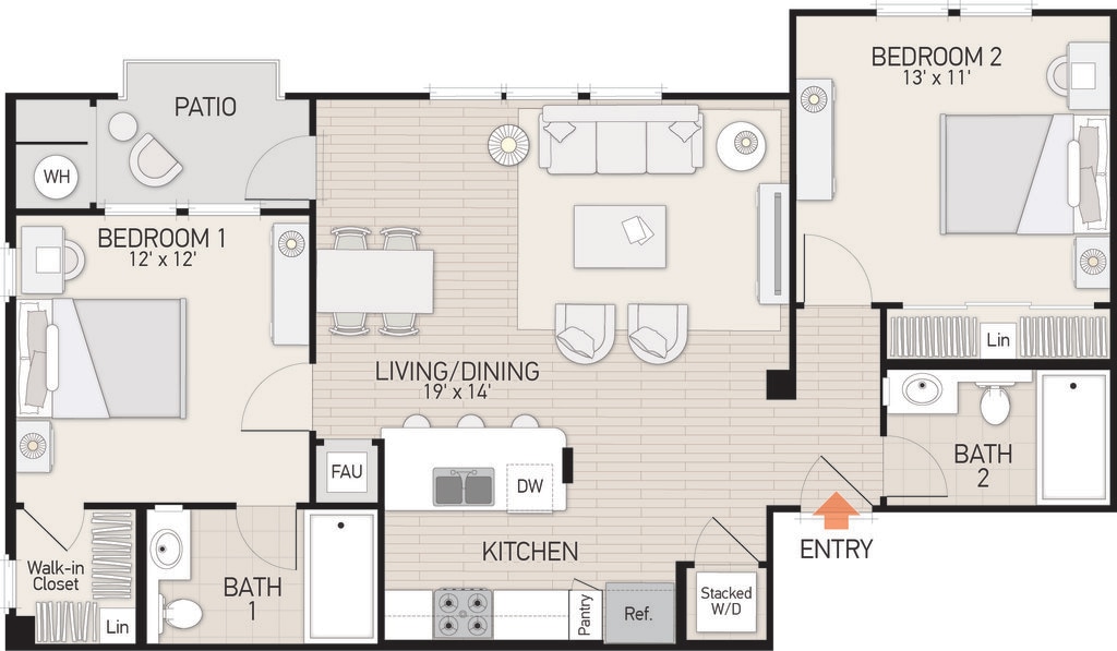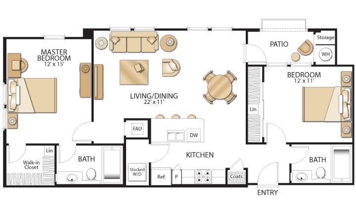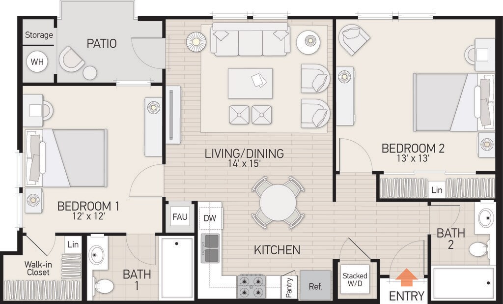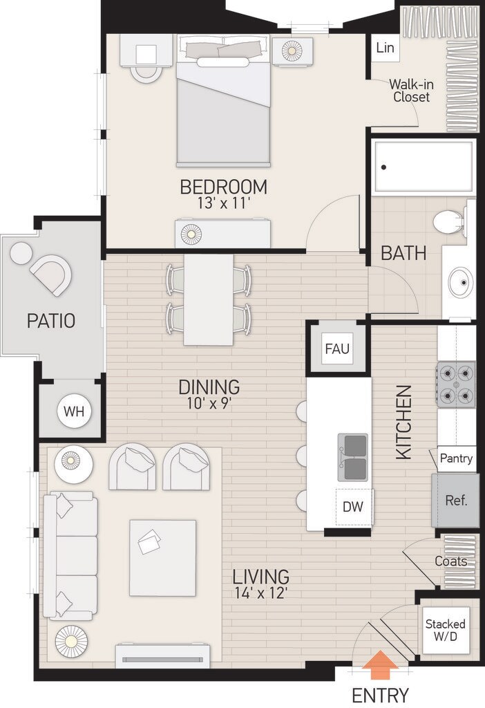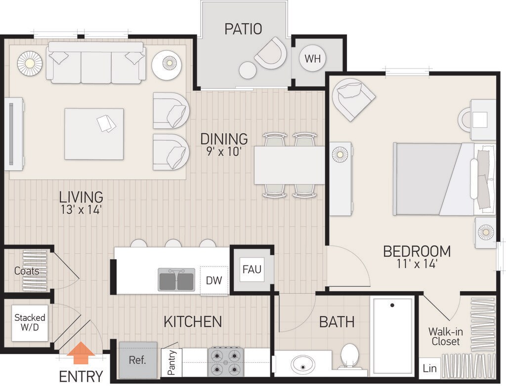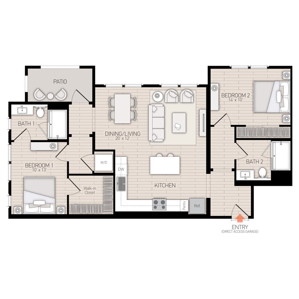 1 Bed, 1 Bath, 752 sq ftAvailable NowModel Gallery