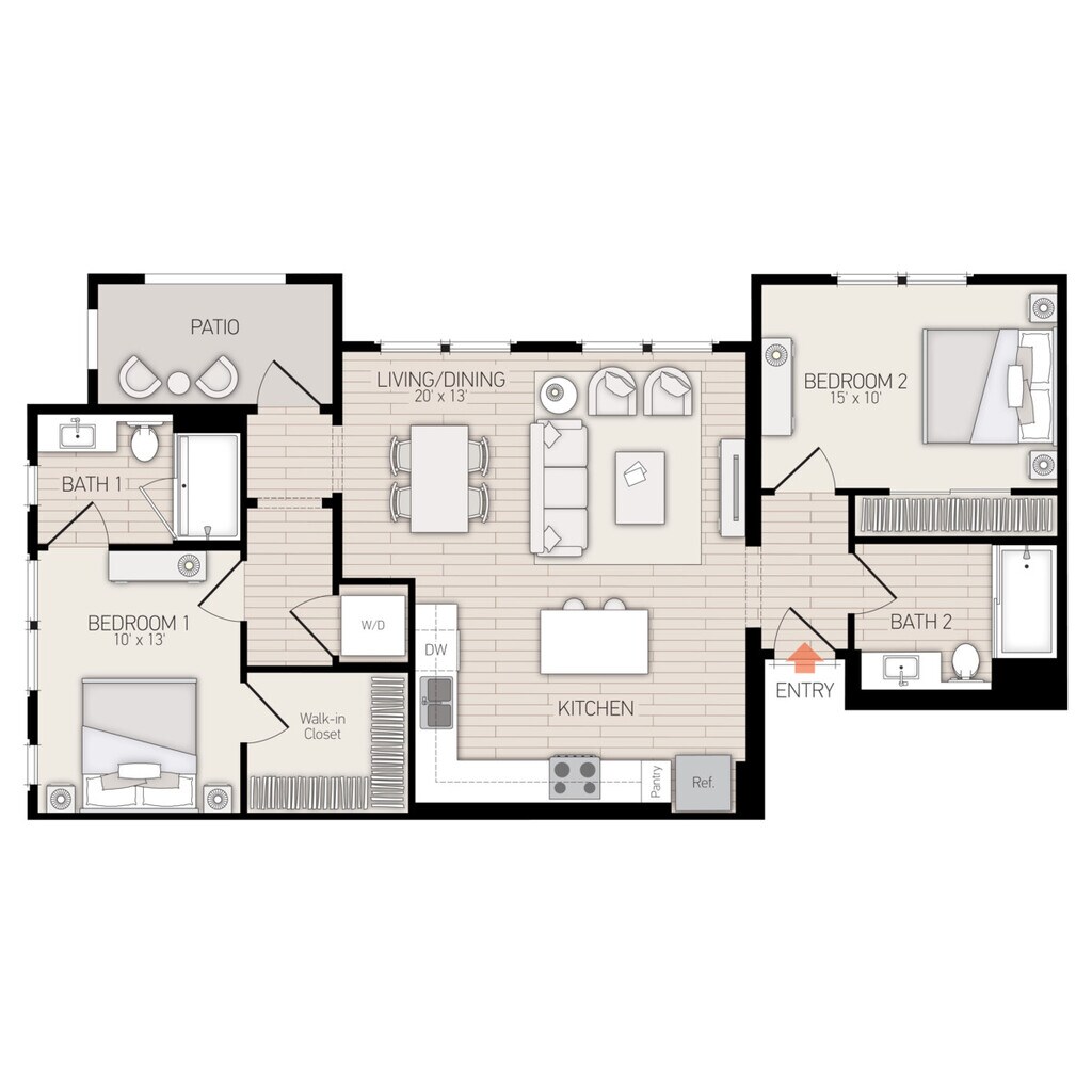 1 Bed, 1 Bath, 754 sq ftAvailable NowModel Gallery