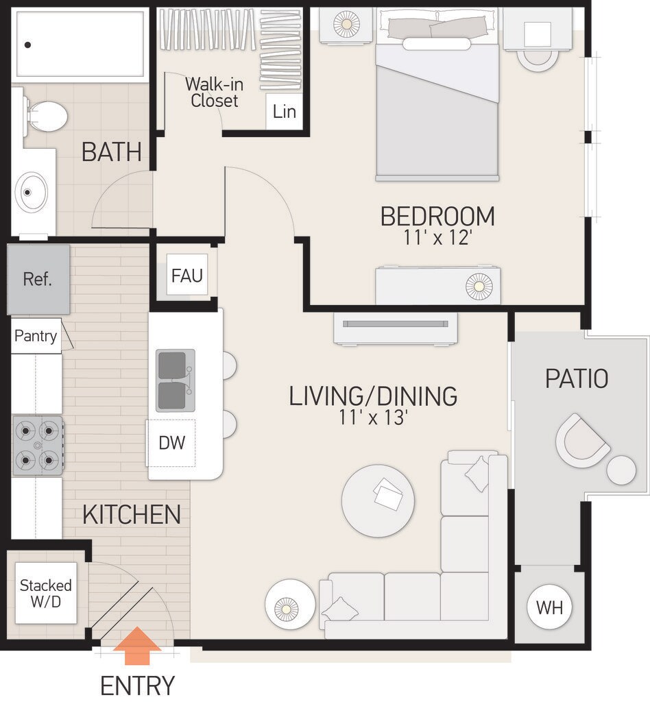 1 Bed, 1 Bath, 565 sq ftAvailable NowCheapest 1 BedroomThis is the cheapest 1 Bedroom at this PropertyModel Gallery
