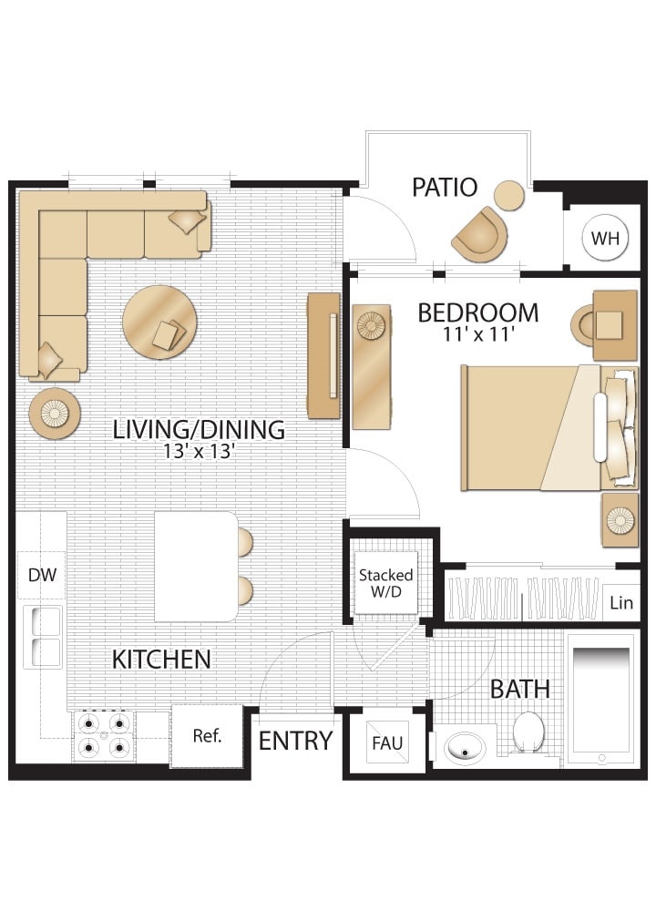 Apartment Model: Plan 1From $2,6451 Bedroom, 1 Bath, 565 sq ftAvailable Now![]()