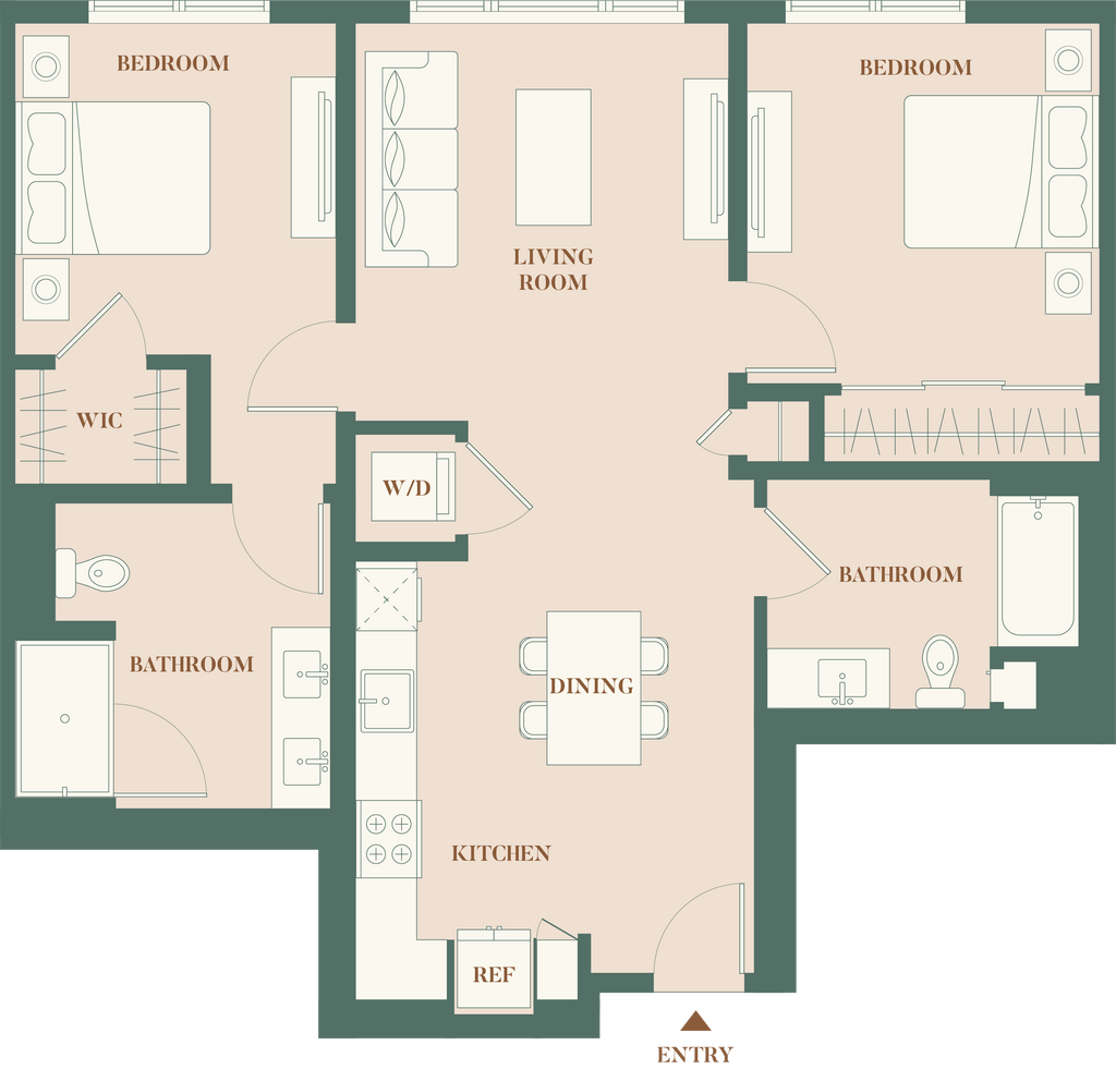 2 Beds, 2 Baths, 1081 sq ftModel Gallery