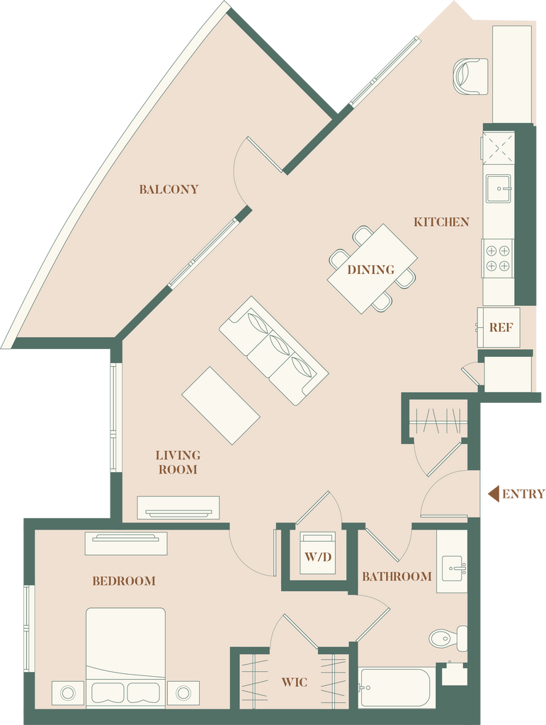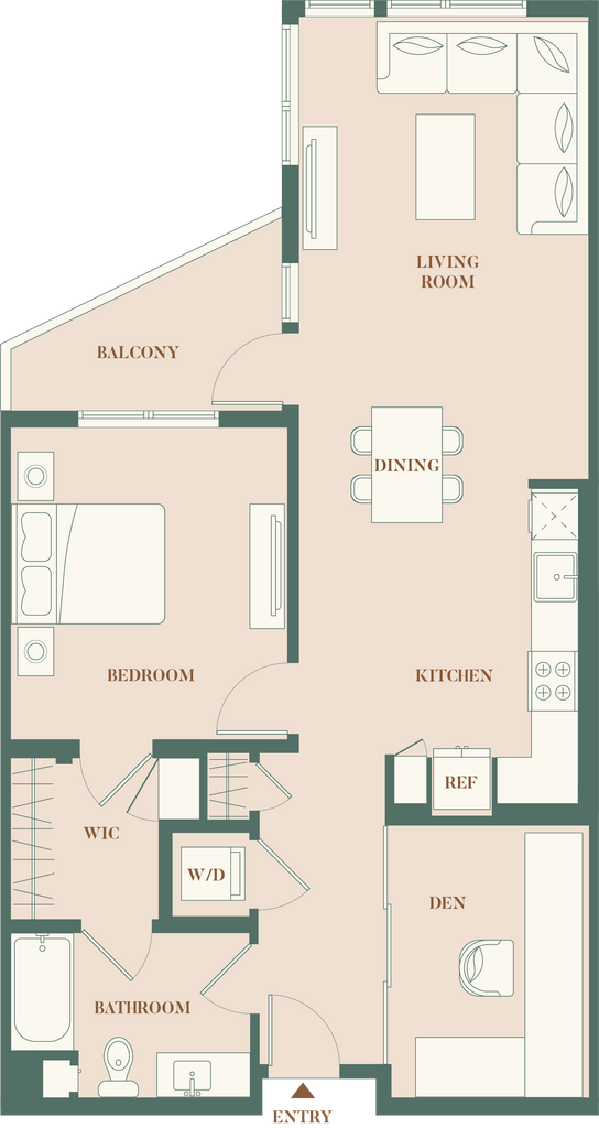 1 Bed, 1 Bath, 742 sq ftModel Gallery