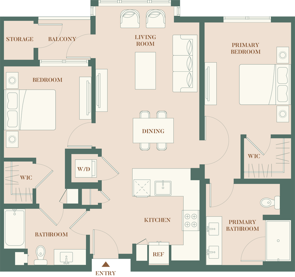 Apartment Model: 2B$5,9002 Bedroom, 2 Bath, 1099 sq ftAvailable November 6, 2025![]()