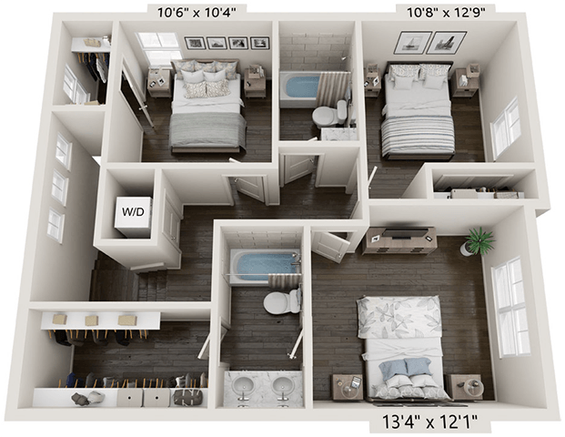 A1A - Floorplan 2 Apartment Unit: 228BApartment Model: A1A$1,5501 Bedroom, 1 Bath, 706 sq ftAvailable Now2 Bedrooms