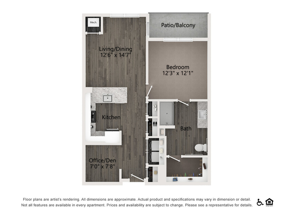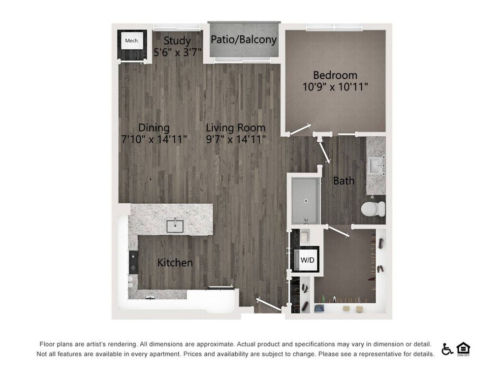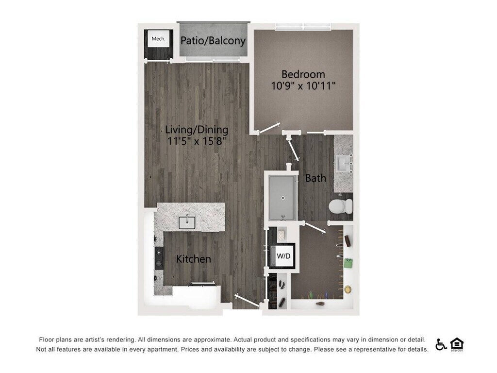 A1 - Floorplan 1 Floor plans are artist's rendering. All dimensions are approximate. Actual product and specifications may vary in dimension or detail. Not all features are available in every rental home. Prices and availability are subject to change. Base rent is based on monthly frequency. Additional fees may apply, such as but not limited to package delivery, trash, water, amenities, etc. Deposits vary. Please see a representative for details.