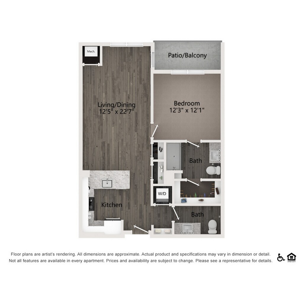 Apartment Model: A3$2,4201 Bedroom, 1.5 Bath, 788 sq ftAvailable NowFloor plans are artist's rendering. All dimensions are approximate. Actual product and specifications may vary in dimension or detail. Not all features are available in every rental home. Prices and availability are subject to change. Base rent is based on monthly frequency. Additional fees may apply, such as but not limited to package delivery, trash, water, amenities, etc. Deposits vary. Please see a representative for details.