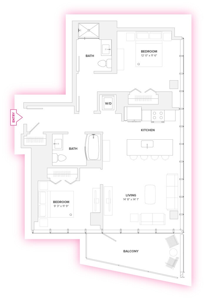 2 Beds, 2 Baths, 969 sq ftModel Gallery