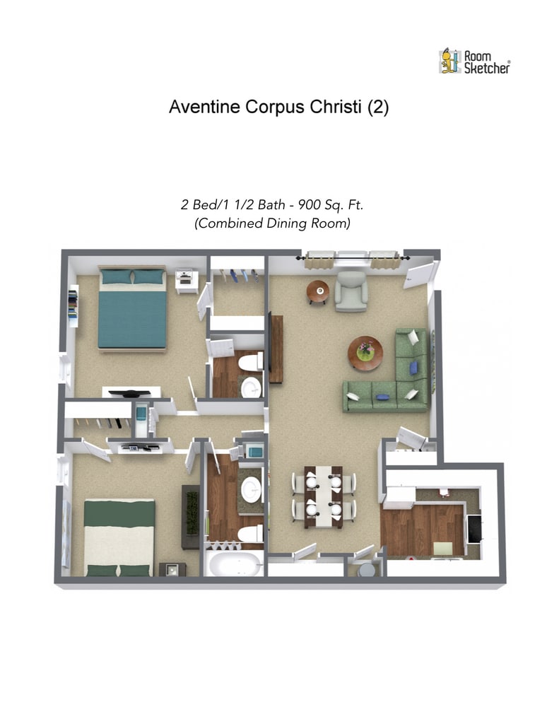 2 Beds, 1.5 Baths, 900 sq ftModel Gallery