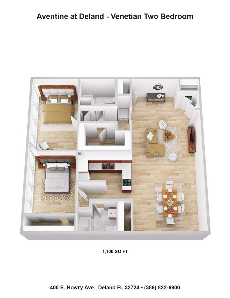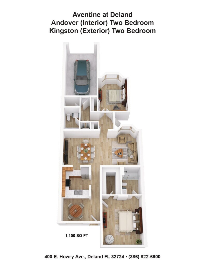Aventine at Deland (55+) offers 1 to 2 Bedroom apartments starting from $995 and having 512–1,400 sq ft. Here is the current pricing and availability: