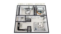 2 Beds, 1 Bath, 840-850 sq ftAvailable NowModel Gallery
