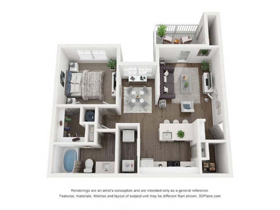 Apartment Model: A1From $1,3241 Bedroom, 1 Bath, 683 sq ftAvailable NowFloor plans are artist's rendering. All dimensions are approximate. Actual product and specifications may vary in dimension or detail. Not all features are available in every rental home. Prices and availability are subject to change. Base rent is based on monthly frequency. Additional fees may apply, such as but not limited to package delivery, trash, water, amenities, etc. Deposits vary. Please see a representative for details.