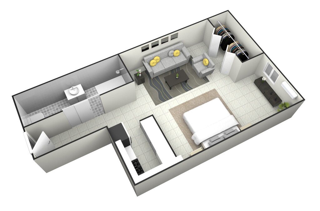Studio, 1 Bath, 400 sq ftModel Gallery