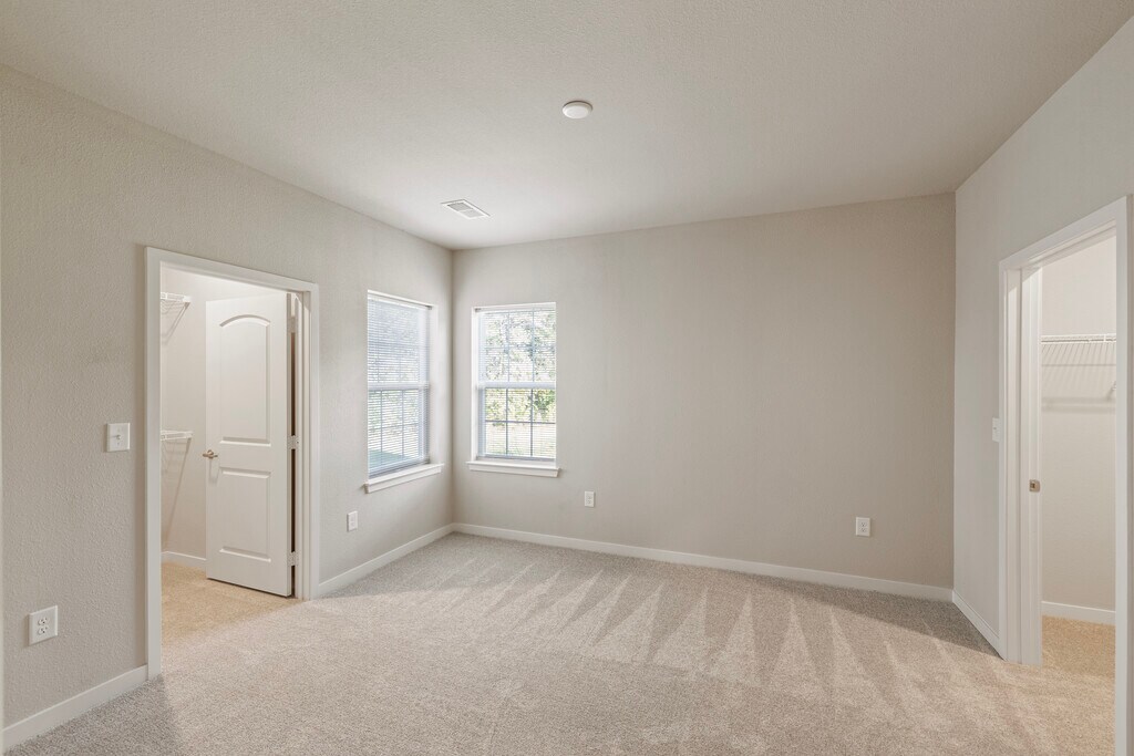 - Expansive closets with open air shelving
