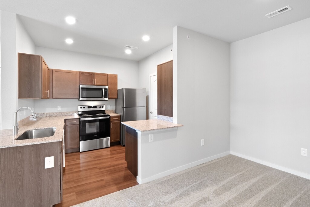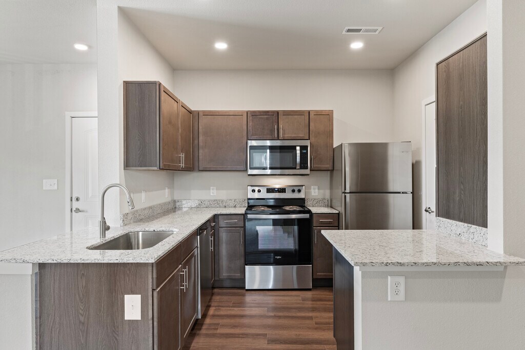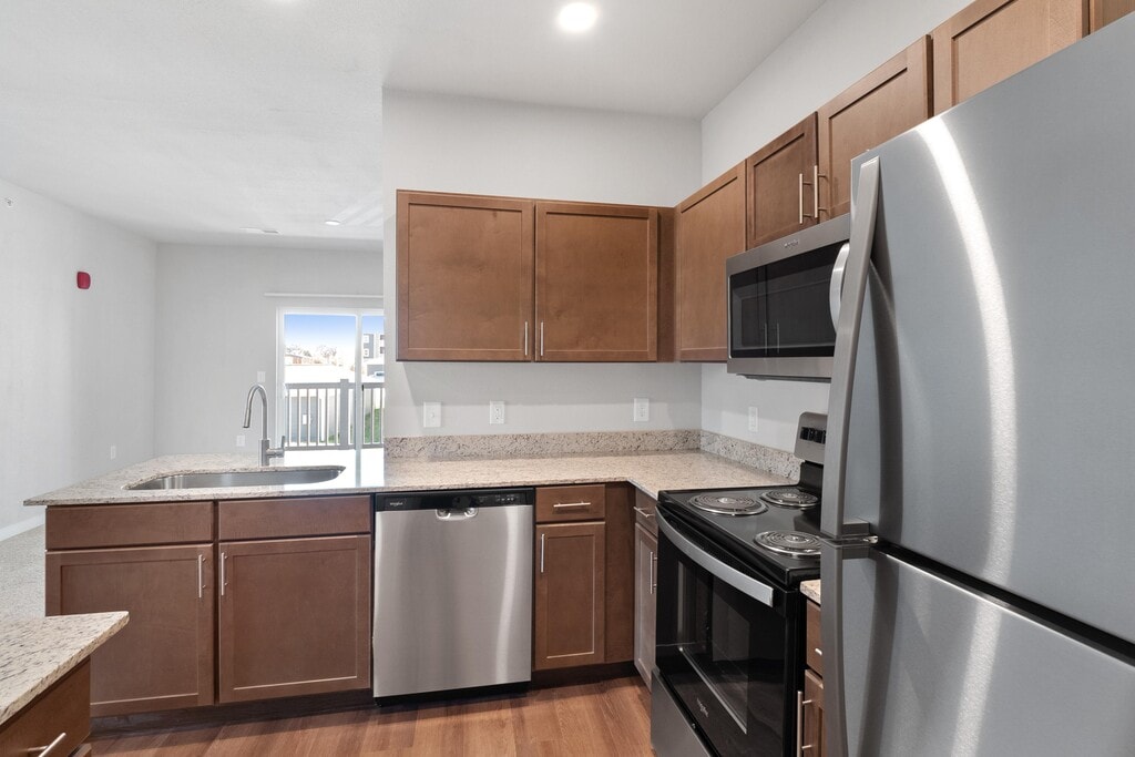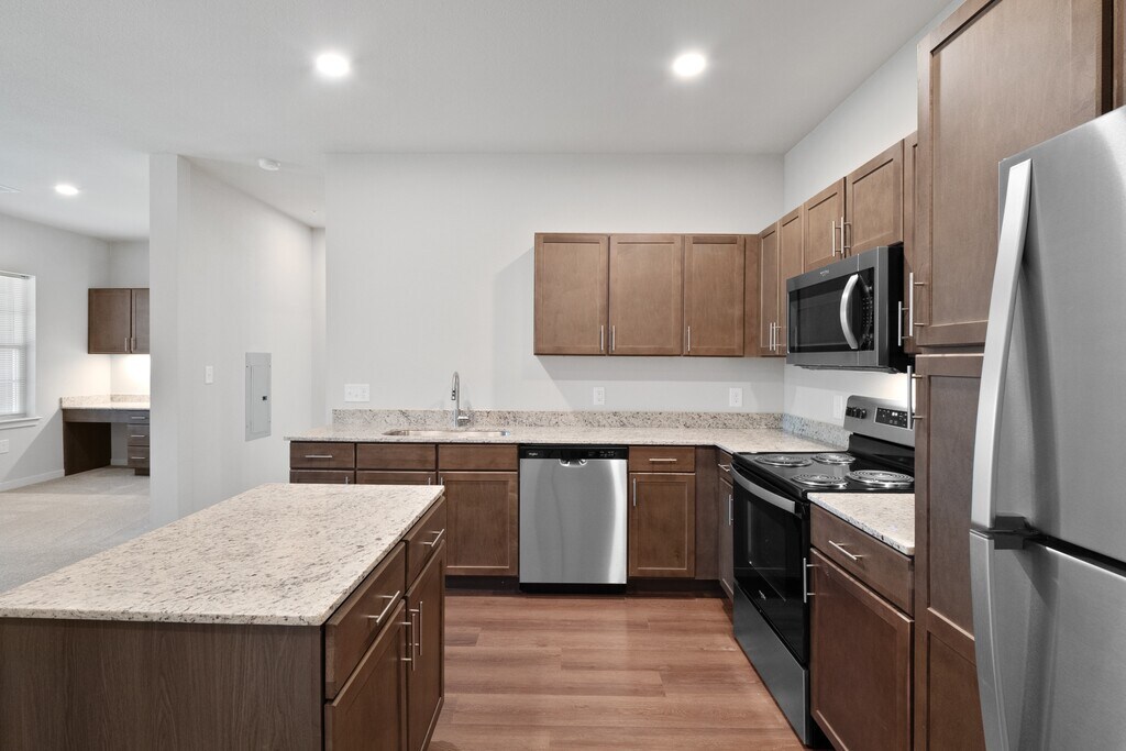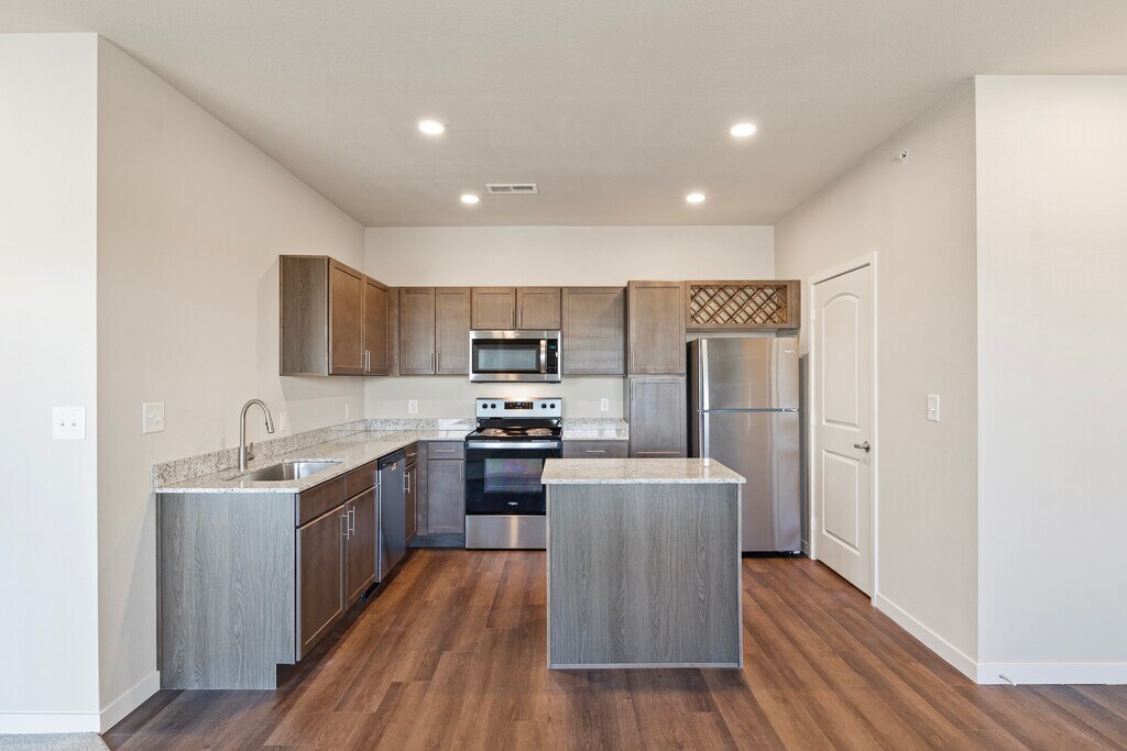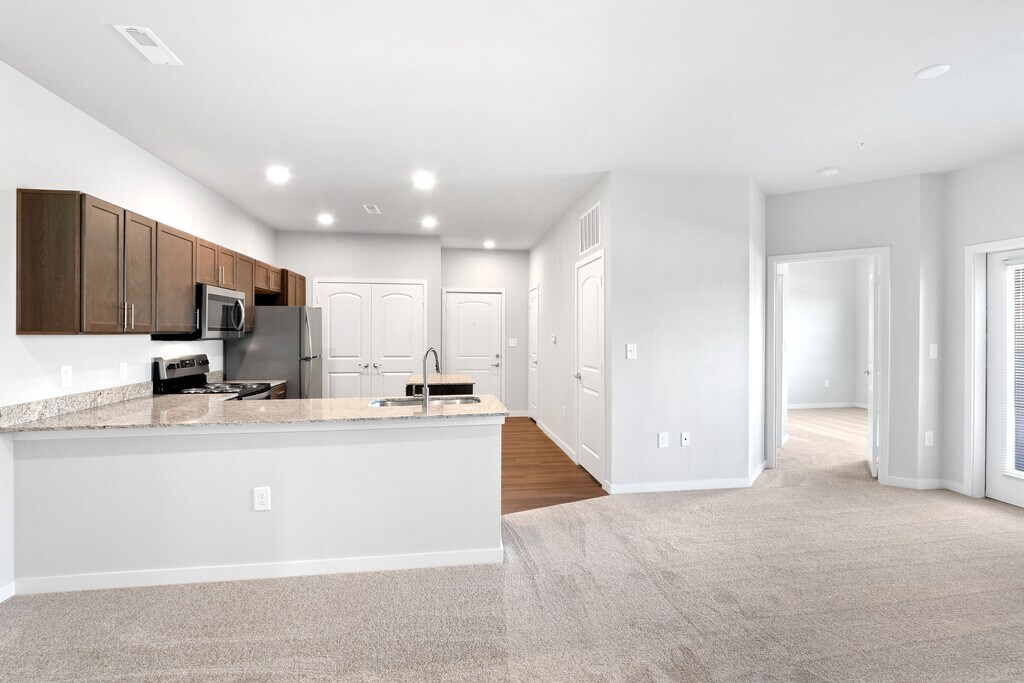 Modern designs, elegant finishes, and upscale amenities are waiting for you at Aventura at Hawk Ridge. Our Lake Saint Louis apartments come in one, two, or three-bedroom layouts that are spacious and adaptable. A variety of interior luxuries adorn them including electric stainless-steel appliances, full-size washer and dryer, 9 ft ceilings, and more. As a resident of our pet-friendly community, you will also have exclusive access to a resort-inspired swimming pool with a sundeck and cabana, a gated dog park, and a 24-hour fitness center with a cardio room among other life-enhancing amenities. Our apartments in Lake Saint Louis offer the perfect blend of form and function. The style we provide extends beyond the thoughtfully designed interiors, perfectly sized living areas, and modern fixtures of your new apartment home. Do not forget about our meticulous landscaping and charming community spaces that are perfect for hosting your friends and family.