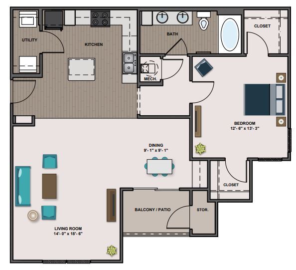Apartment Model: A2$1,5251 Bedroom, 1 Bath, 1075 sq ftAvailable December 3, 2025FloorplansPhotos![]()