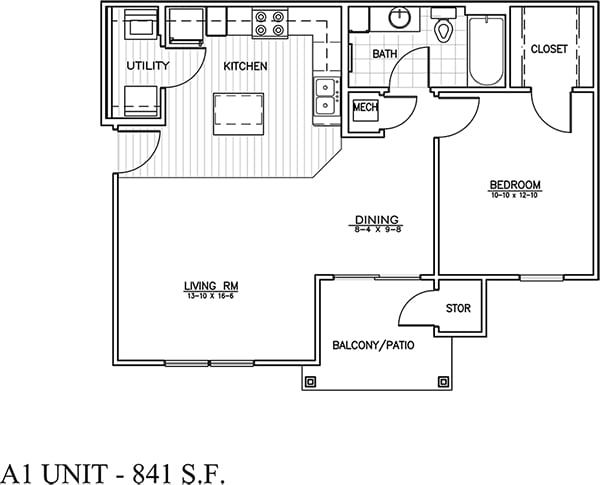 Apartment Model: A1From $1,3251 Bedroom, 1 Bath, 841 sq ftUnavailableFloorplansPhotos![]()