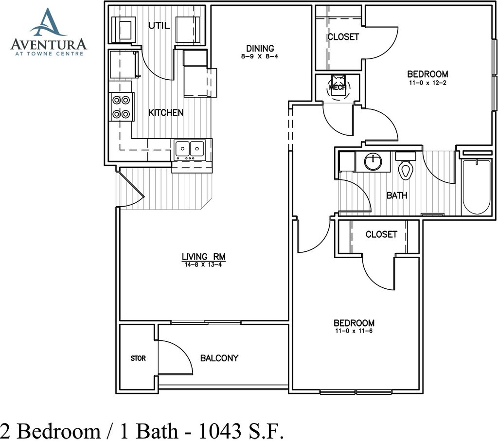 2 Beds, 1 Bath, 1043 sq ftModel Gallery