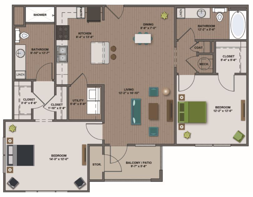1 Bed, 1 Bath, 867 sq ftAvailable NowModel Gallery