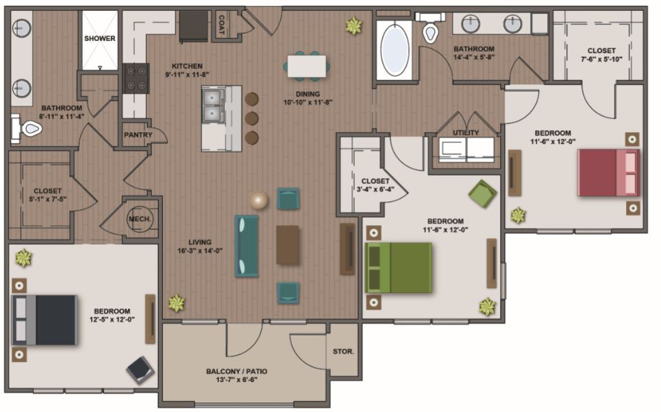 Bonhomme (A4) - Floorplan 7 Apartment Unit: 1308Apartment Model: Bonhomme (A4)$1,6001 Bedroom, 1 Bath, 847 sq ftAvailable Now![]()