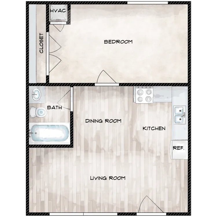 1 Bed, 1 Bath, 450 sq ftAvailable NowModel Gallery
