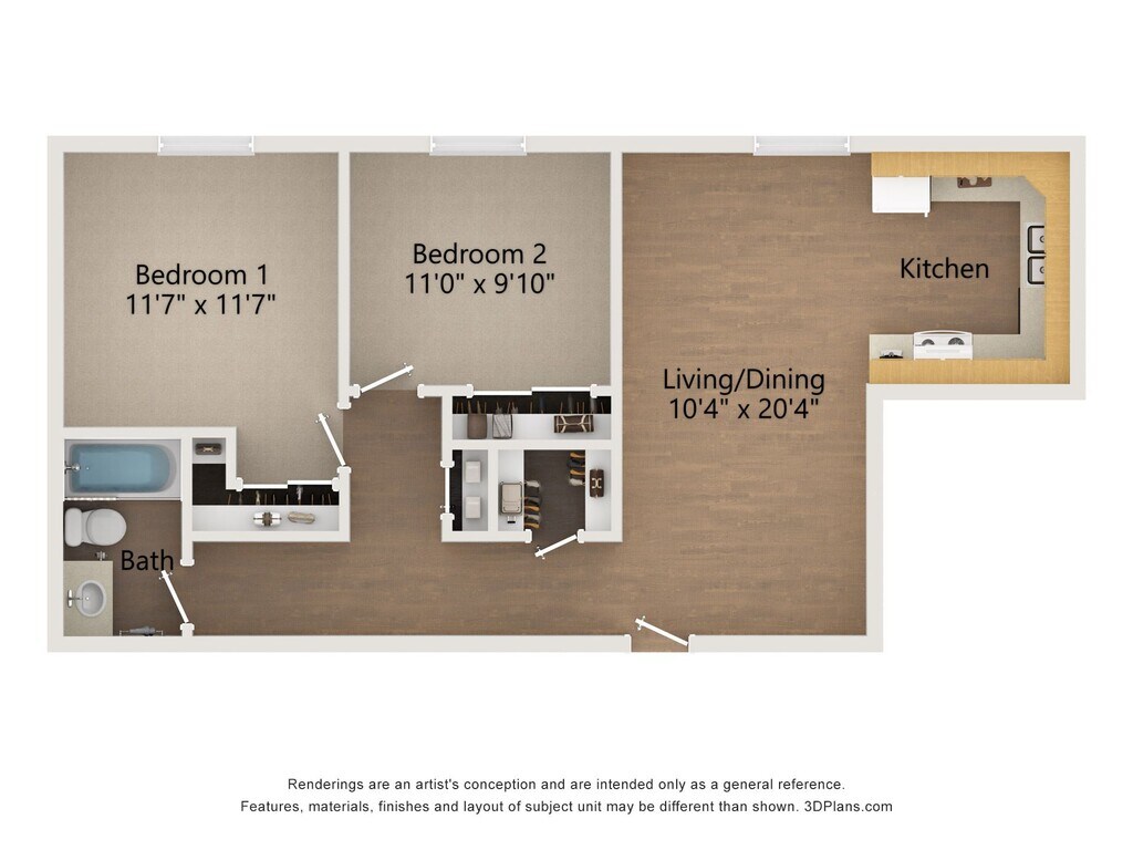 2 Beds, 1.5 Baths, 1250 sq ftAvailable NowLargest 2 BedroomThis is the largest 2 Bedroom at this PropertyModel Gallery