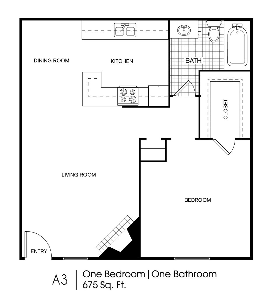 Apartment Model: A3From $8301 Bedroom, 1 Bath, 674 sq ftAvailable Now![]()
