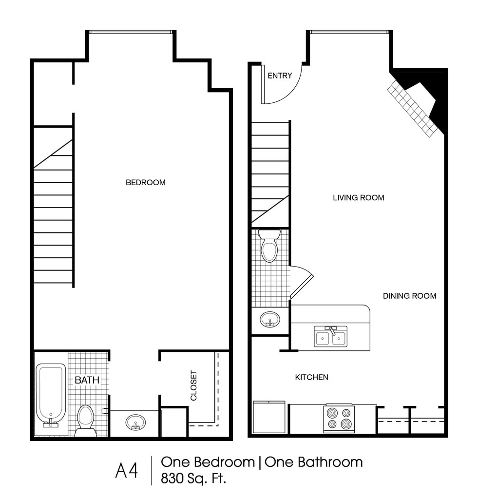 A4 - Floorplan 1 Apartment Unit: 101Apartment Model: A4$9441 Bedroom, 1 Bath, 830 sq ftAvailable NowApartment Unit: 102Apartment Model: A4$9441 Bedroom, 1 Bath, 830 sq ftAvailable NowApartment Unit: 106Apartment Model: A4$9441 Bedroom, 1 Bath, 830 sq ftAvailable Now2 Bedrooms