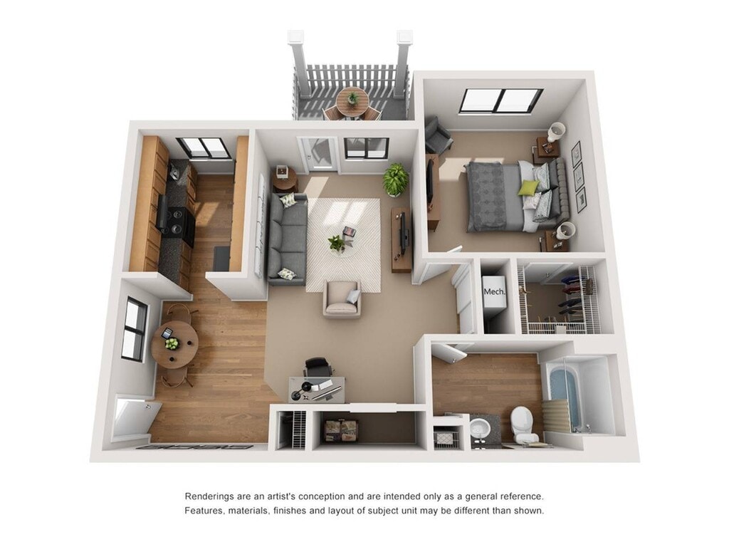 1 Bed, 1 Bath, 785 sq ftAvailable NowLargest 1 BedroomThis is the largest 1 Bedroom at this PropertyModel Gallery