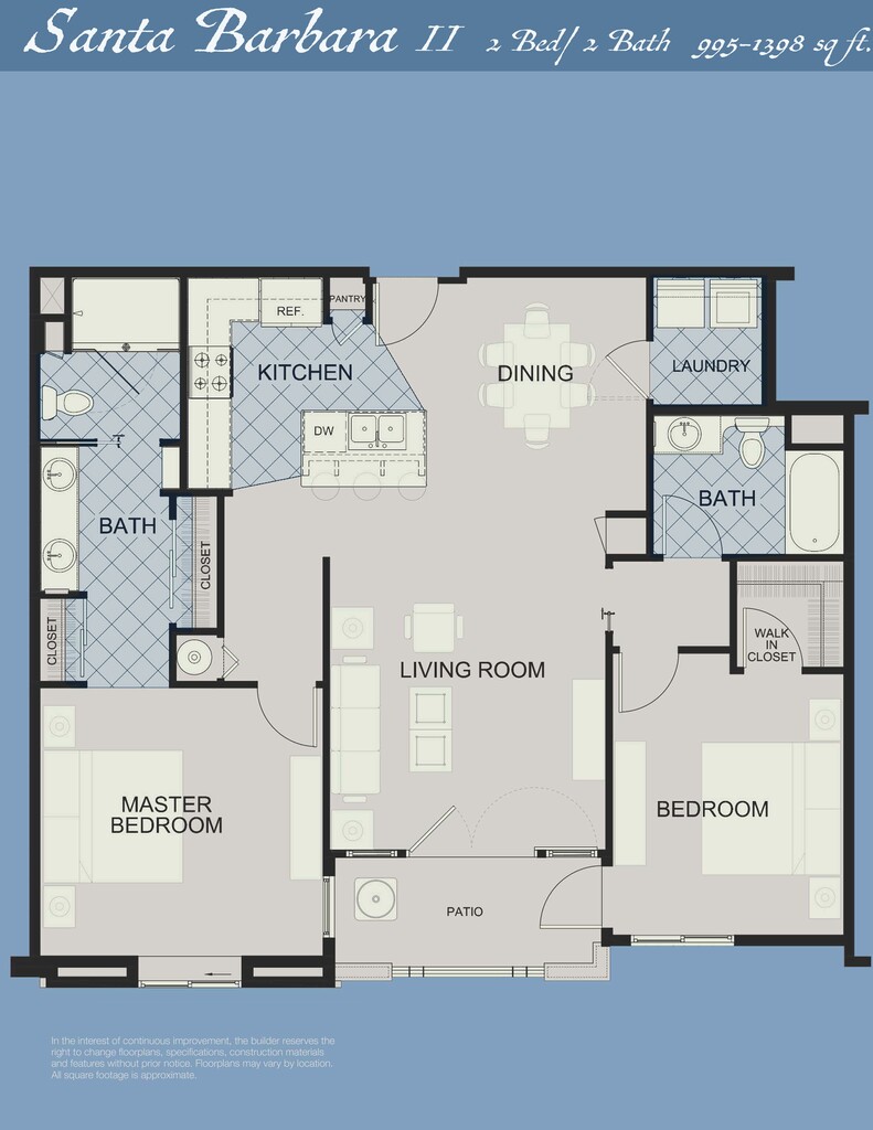 Apartment Model: Santa Barbara (2x2)From $4,3982 Bedroom, 2 Bath, 825-1583 sq ftAvailable Now![]()