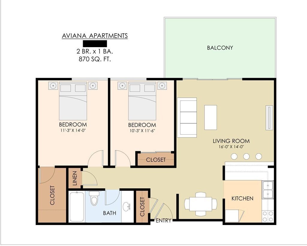 Apartment Model: 2 Bedroom 1 BathroomFrom $3,2952 Bedroom, 1 Bath, 870 sq ftAvailable Now![]()
