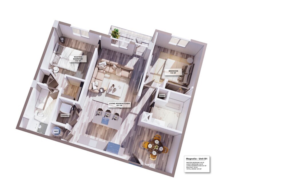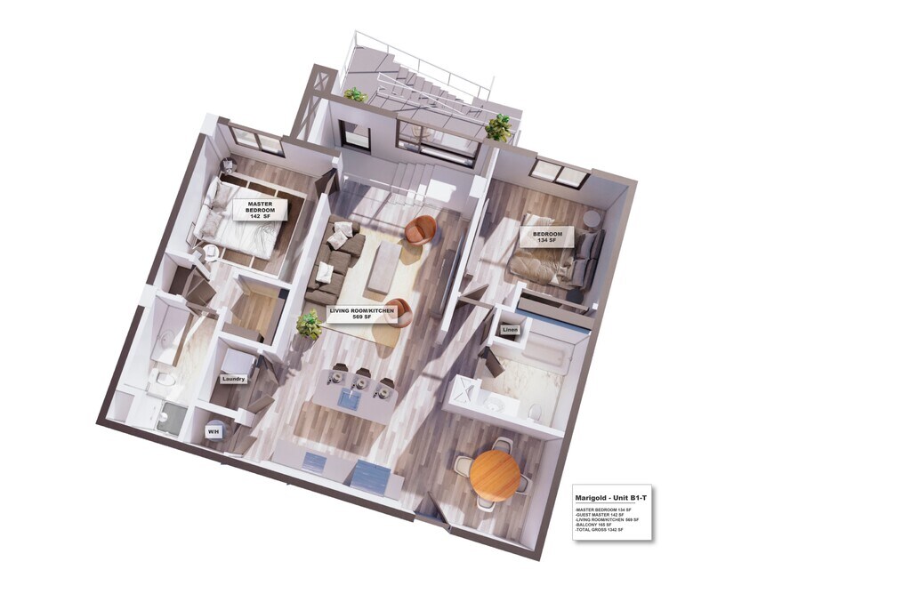 1 Bed, 1 Bath, 753 sq ftModel Gallery