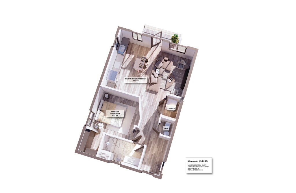 Coral (A1-T) - Floorplan 1 Apartment Unit: 1611 - B-203 - BApartment Model: Coral (A1-T)From $2,6541 Bedroom, 1 Bath, 877 sq ftAvailable November 11, 2025Mimosa (A3)