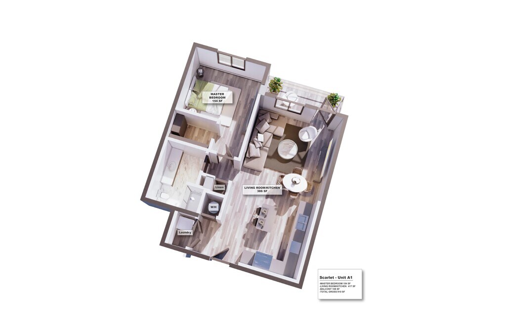 Apartment Model: Scarlet (A1)From $2,2301 Bedroom, 1 Bath, 802 sq ftAvailable Now![]()