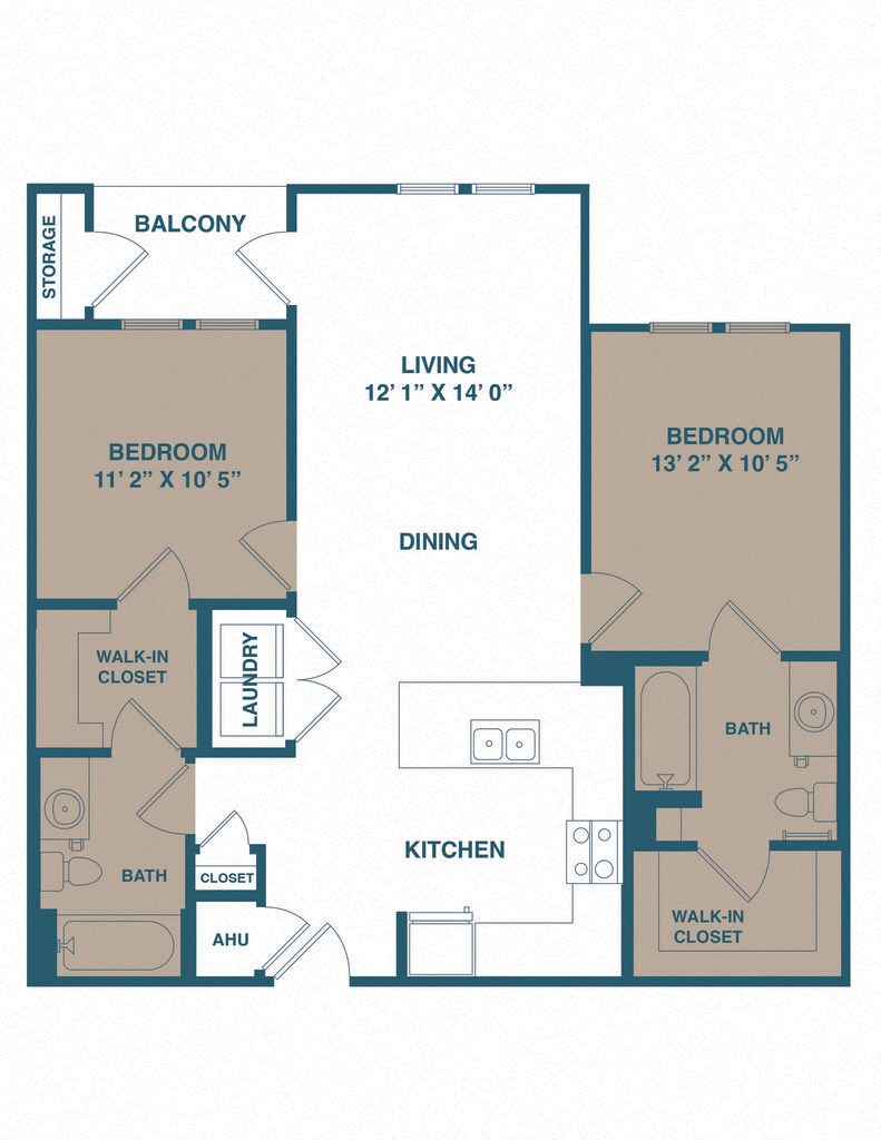 2 Beds, 2 Baths, 1096 sq ftLargest 2 BedroomThis is the largest 2 Bedroom at this PropertyModel Gallery
