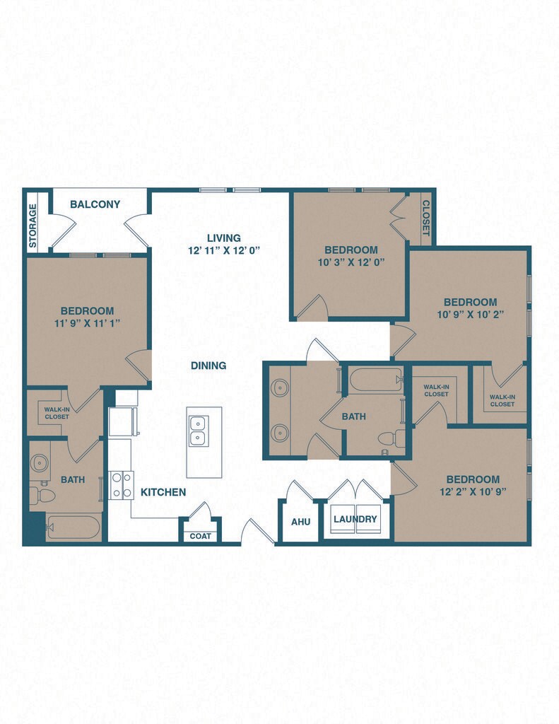 4 Beds, 2 Baths, 1324 sq ftAvailable NowModel Gallery
