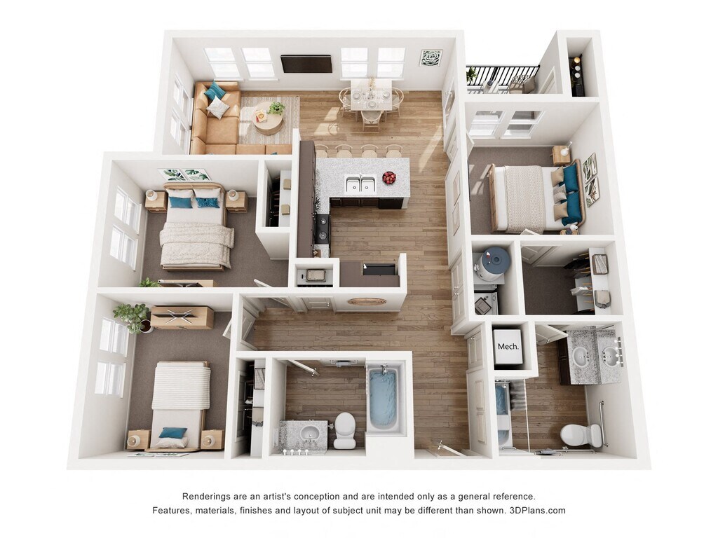 Apartment Model: C2From $1,3553 Bedroom, 2 Bath, 1116 sq ftAvailable Now![]()