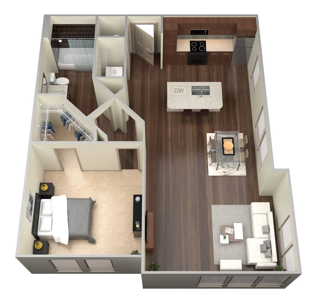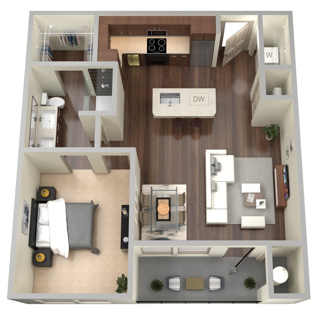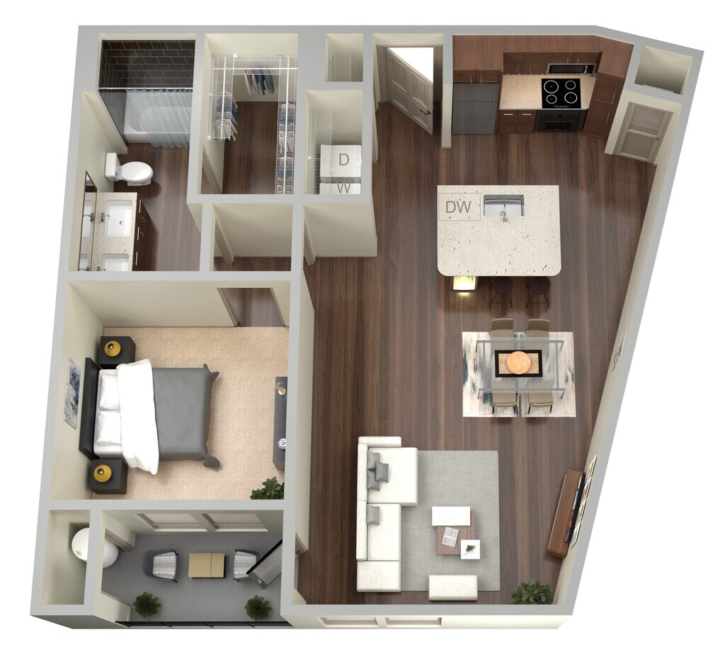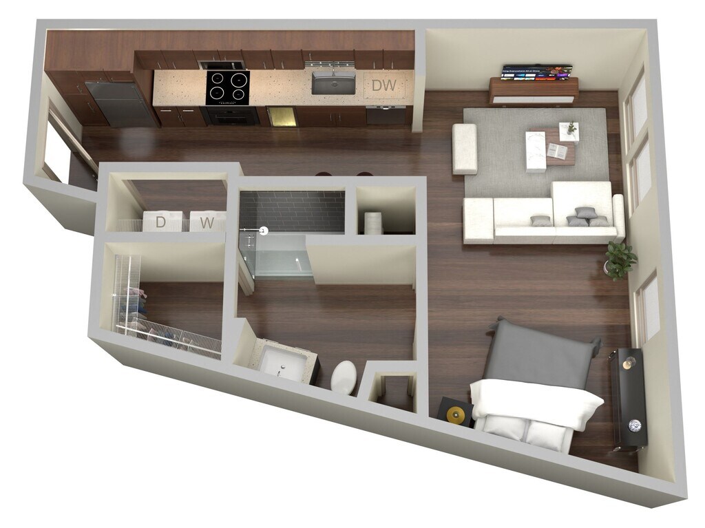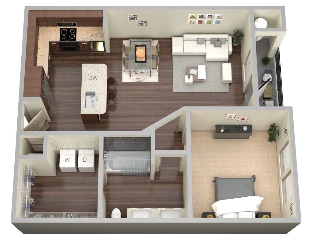 1 Bed, 1 Bath, 606 sq ftAvailable NowModel Gallery