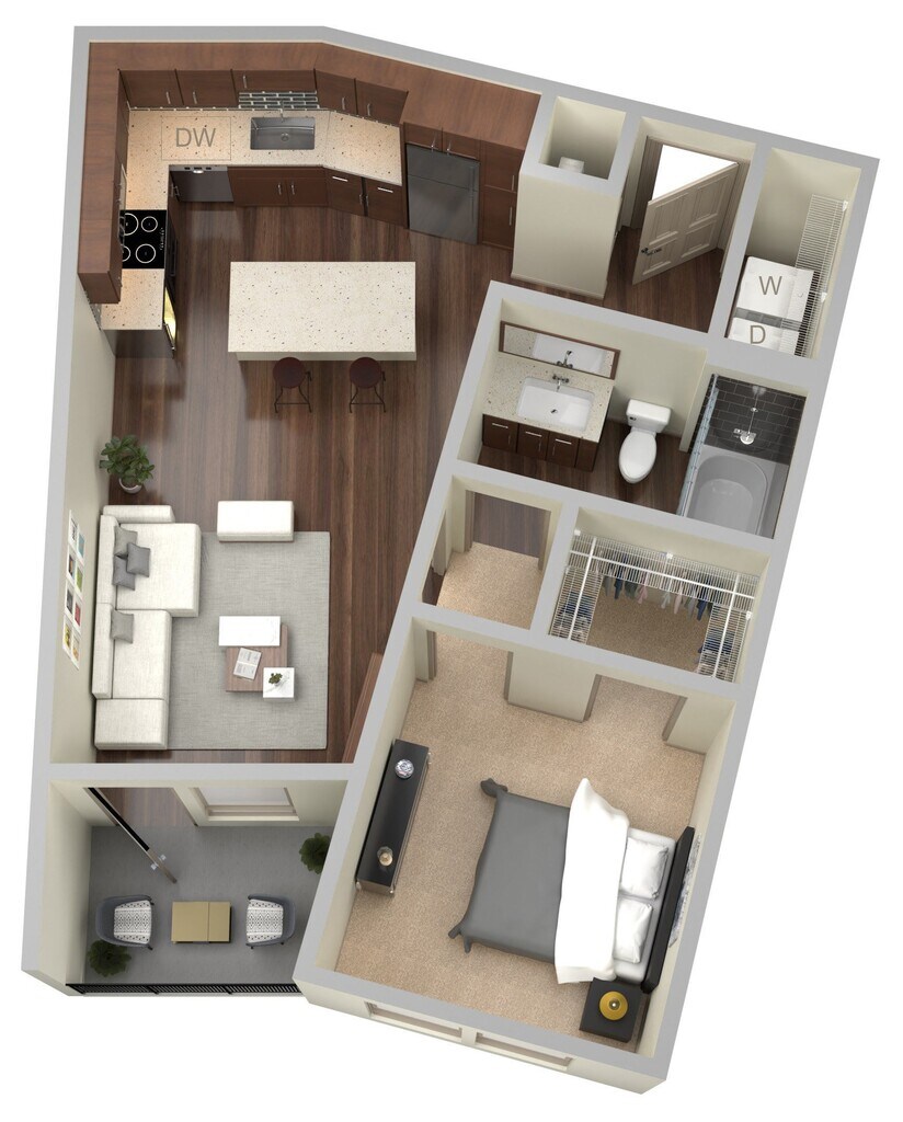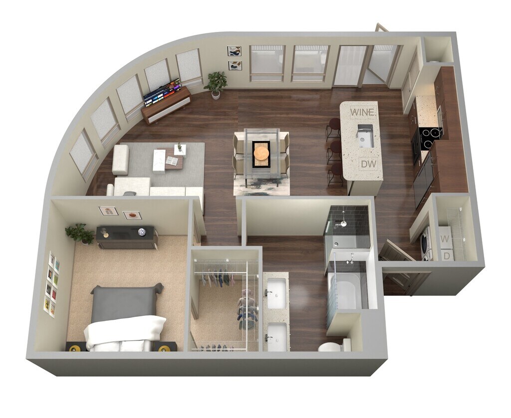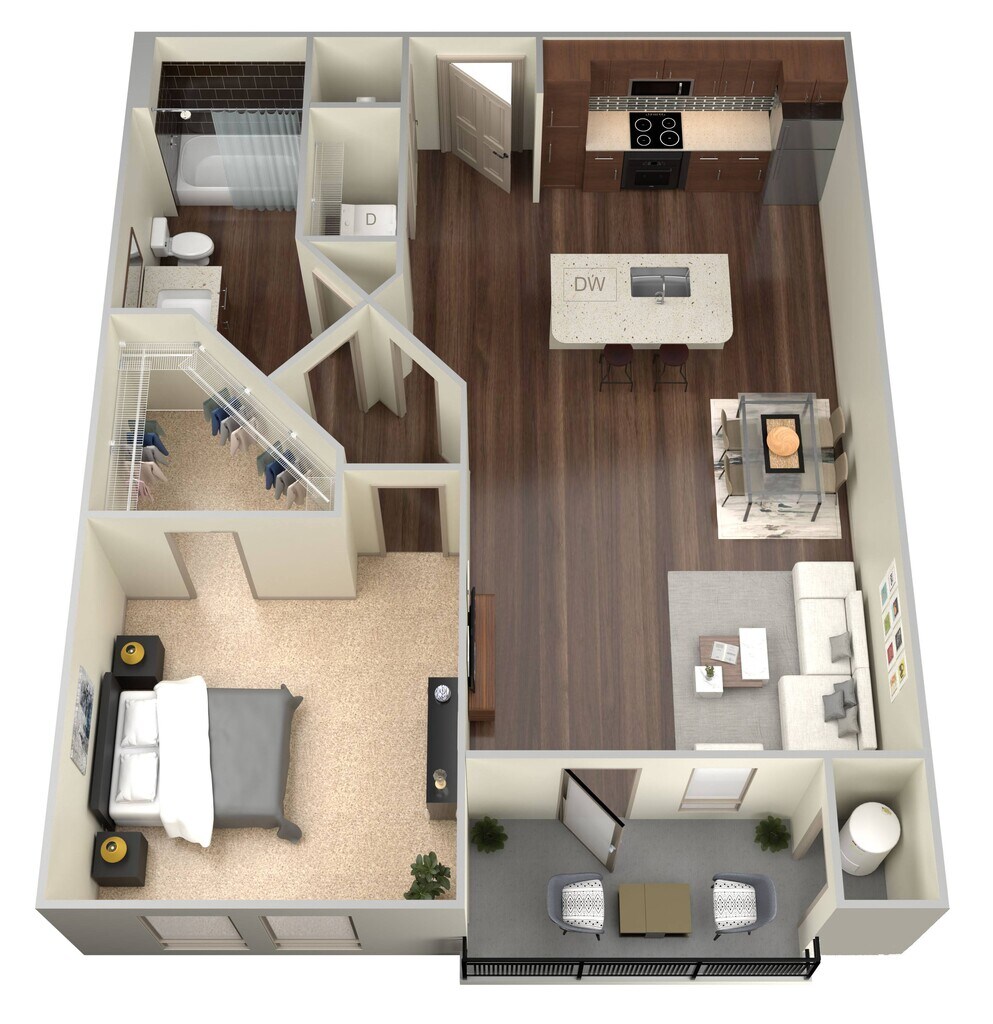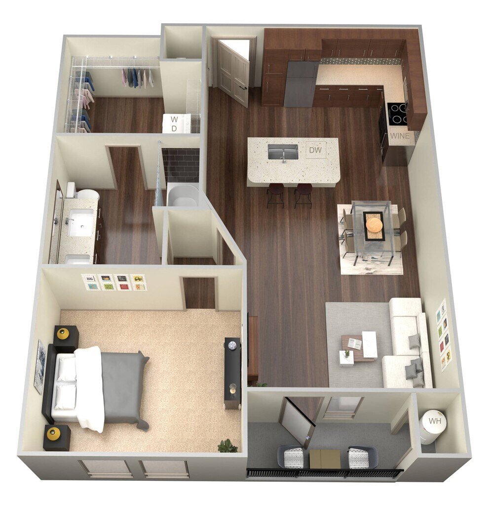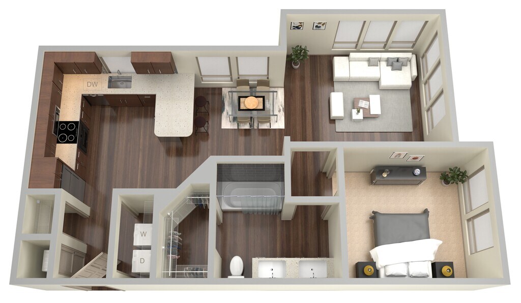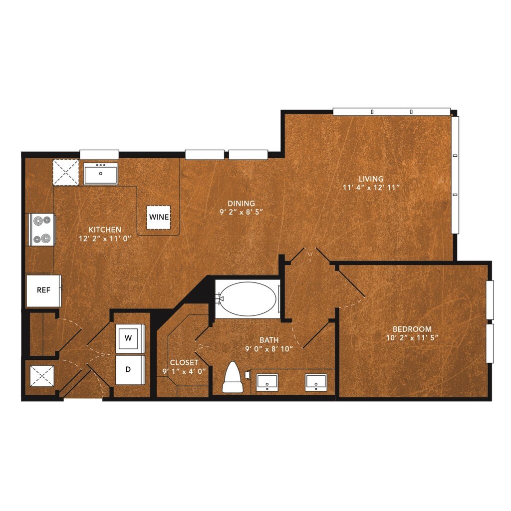 1 Bed, 1 Bath, 606 sq ftAvailable NowModel Gallery