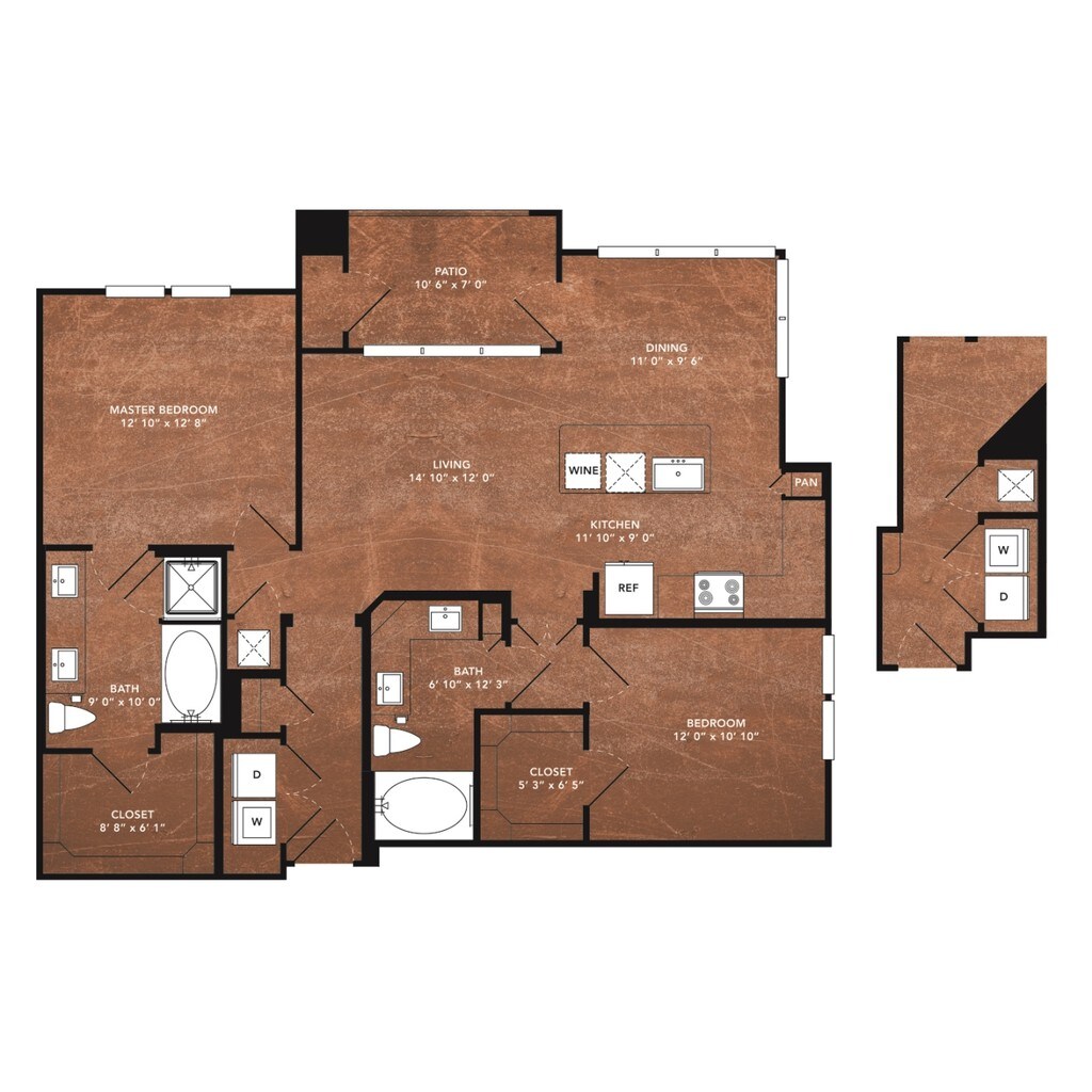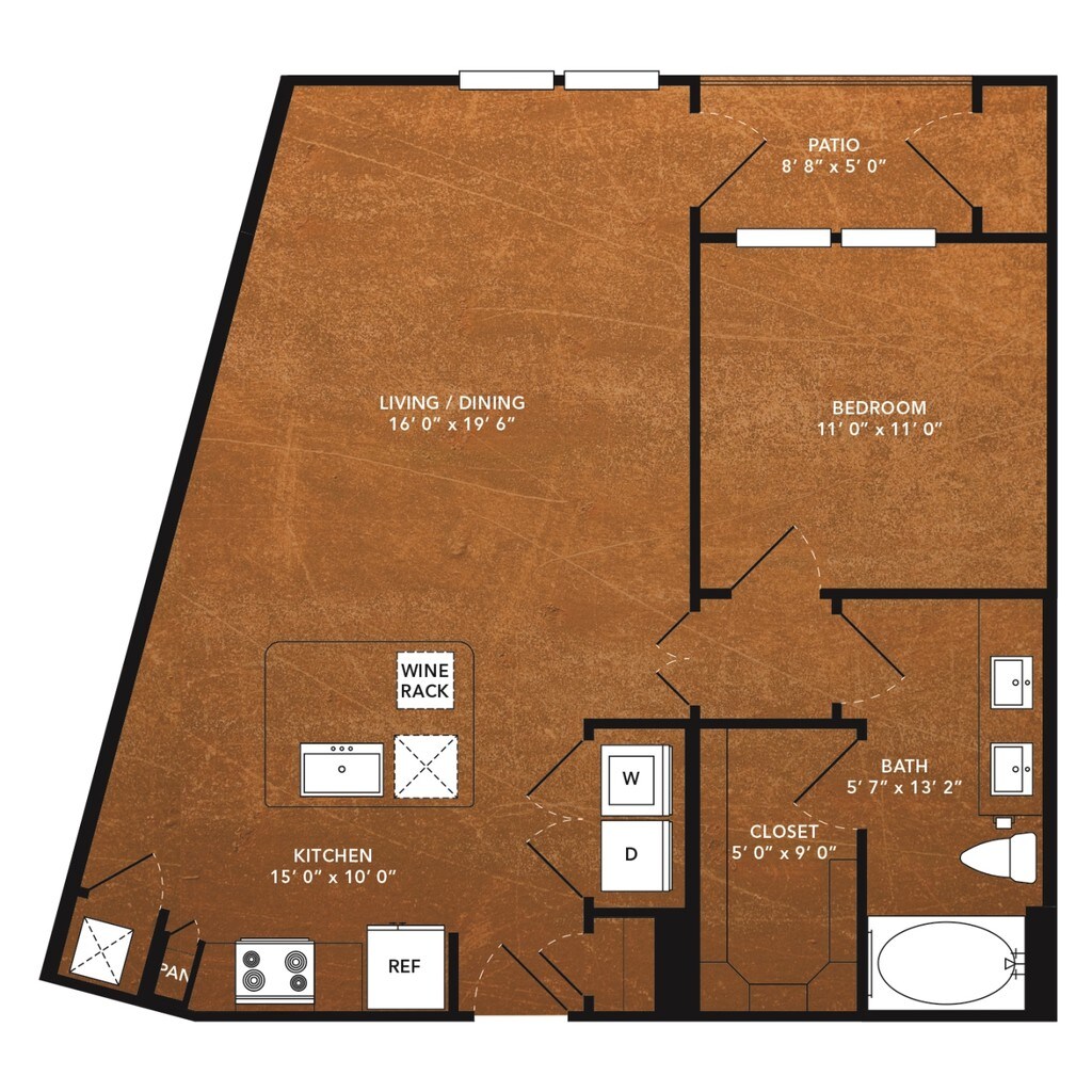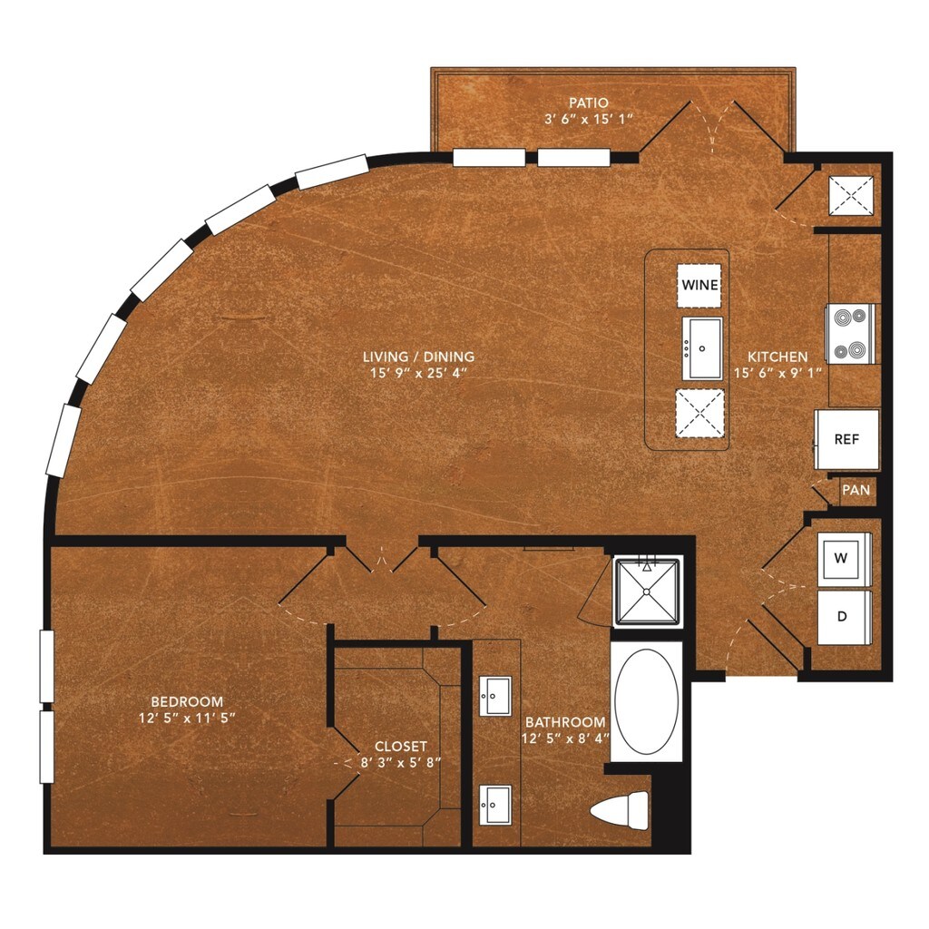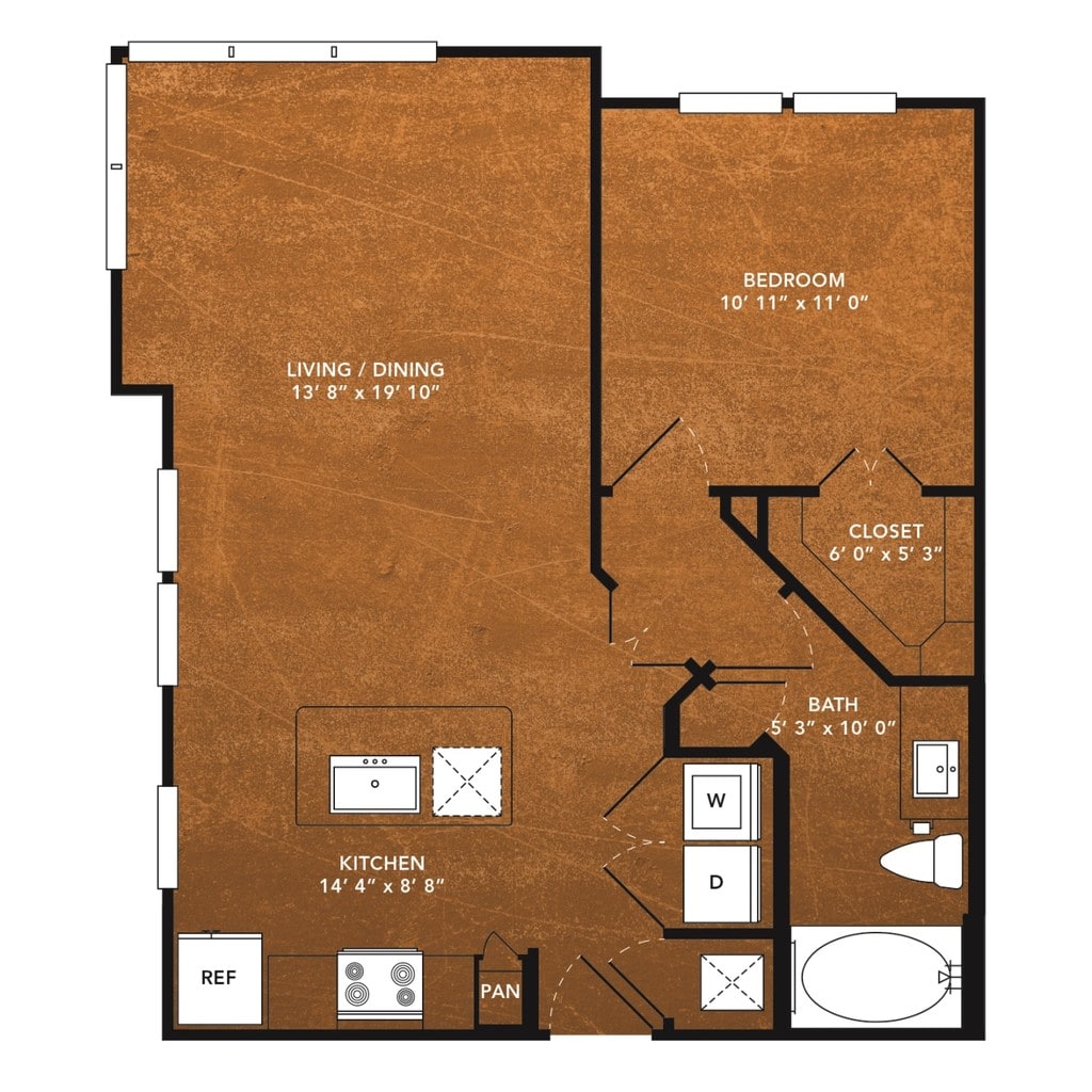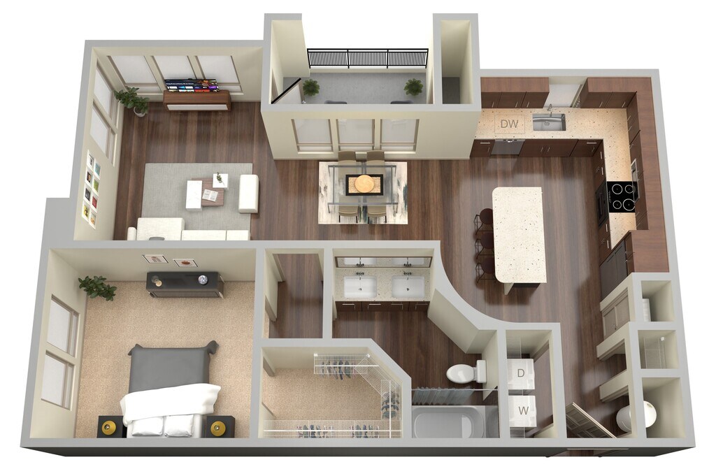 1 Bed, 1 Bath, 606 sq ftAvailable NowModel Gallery