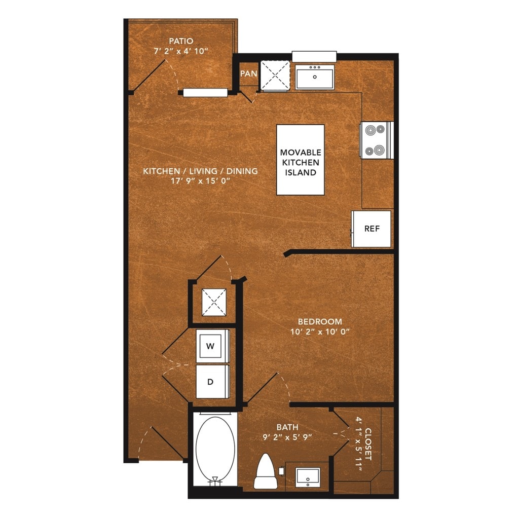 Apartment Model: A1Studio, 1 Bath, 518 sq ftAvailable December 7, 2025![]()