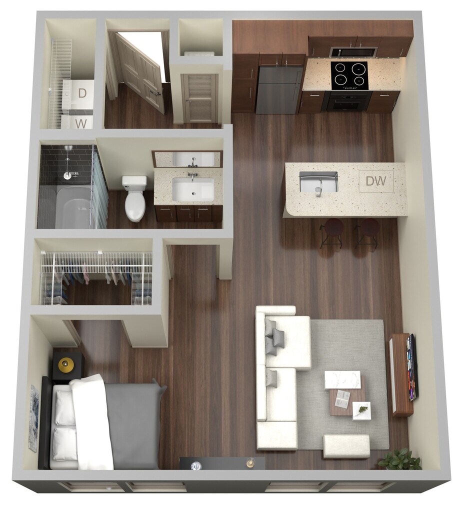Studio, 1 Bath, 527 sq ftModel Gallery