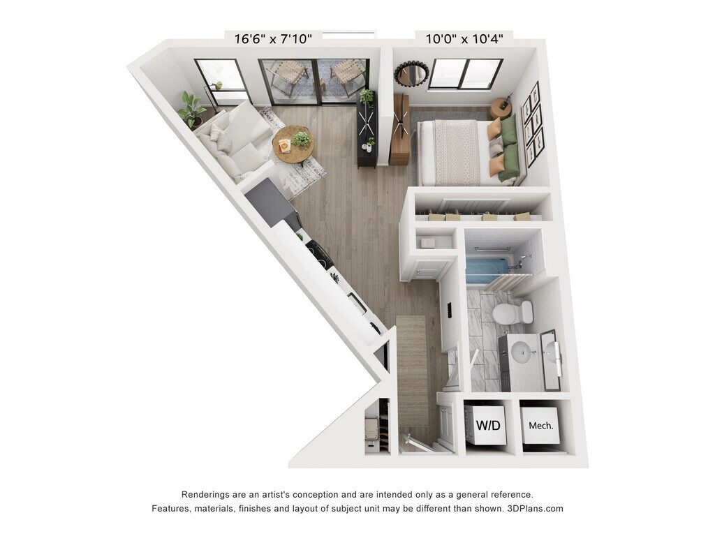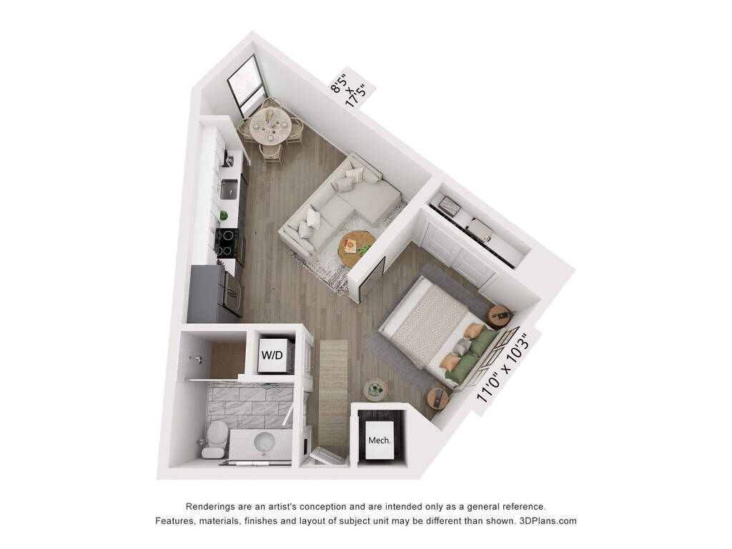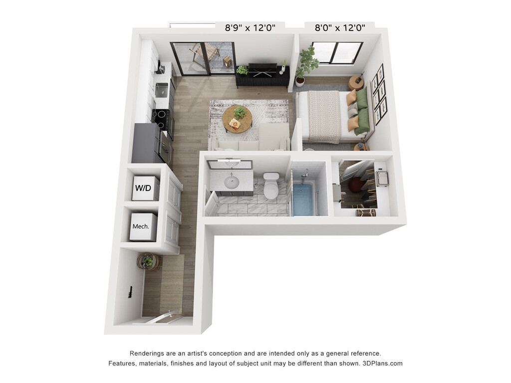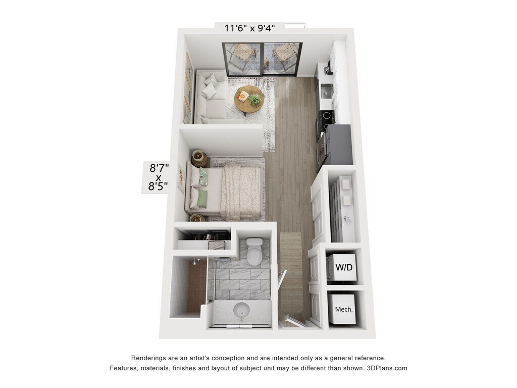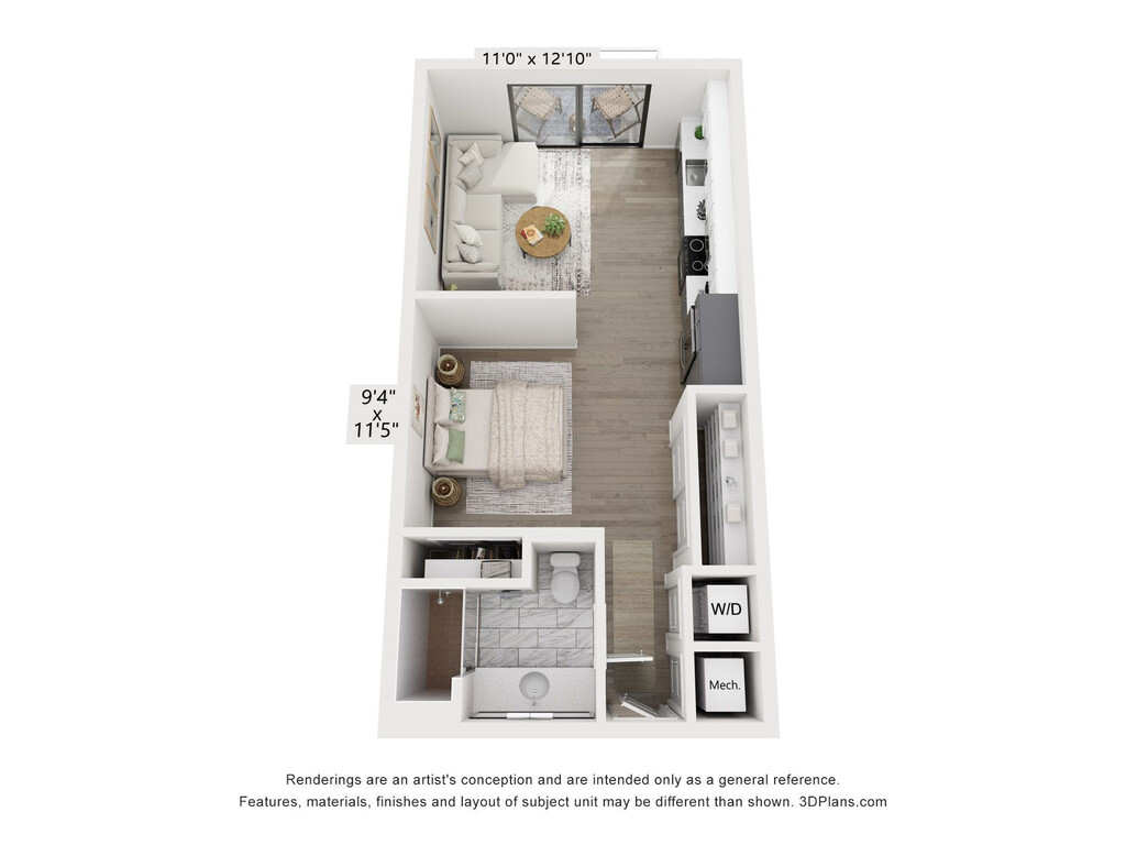 Apartment Model: ST1-EX$2,300Studio, 1 Bath, 567 sq ftUnavailableST1-EX - Floorplan 1 1 Bedroom