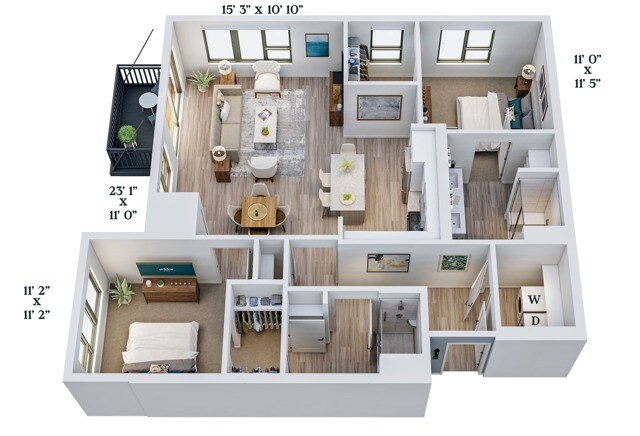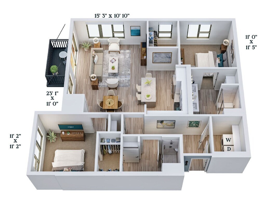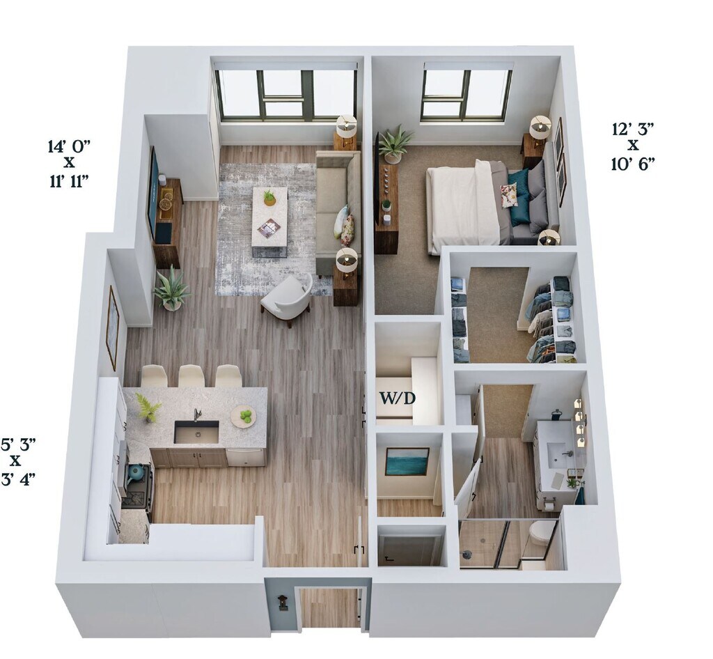 B15 - Floorplan 1 Apartment Unit: 121Apartment Model: B15$2,2881 Bedroom, 1 Bath, 745 sq ftAvailable NowFloorplan B1