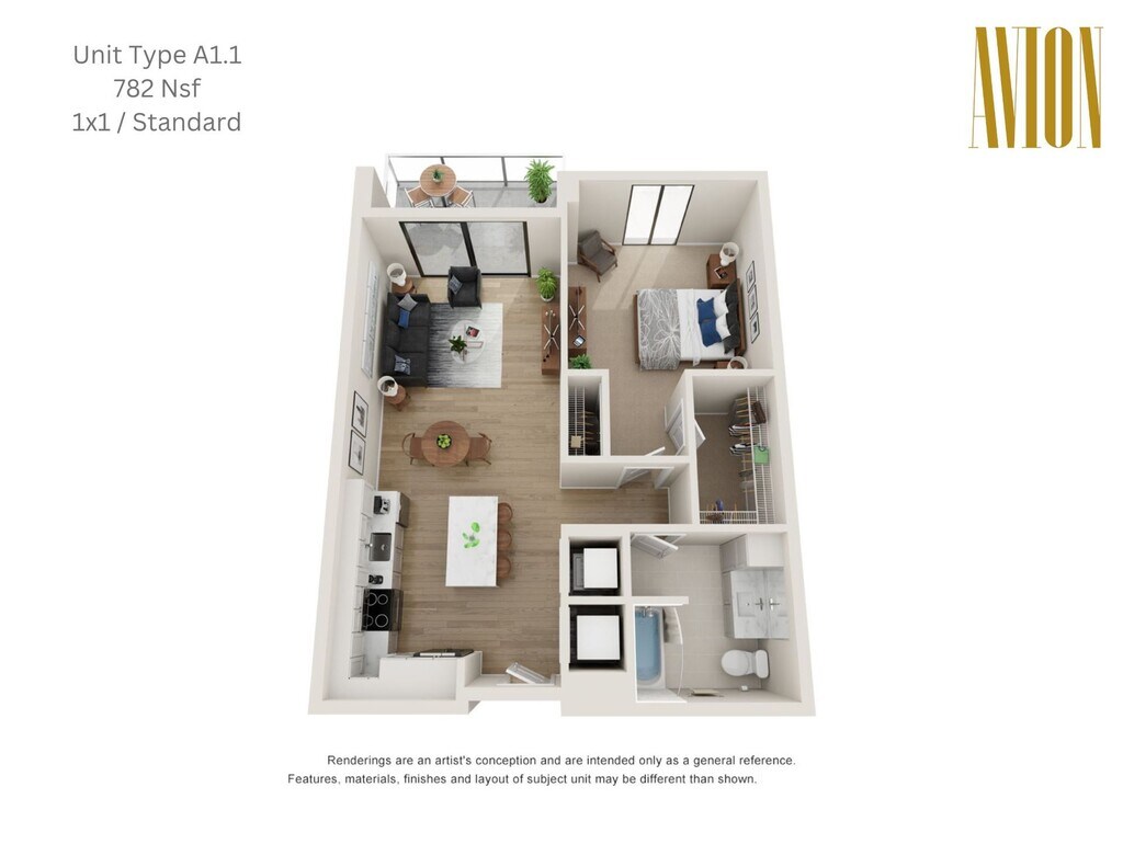 Apartment Model: A1.1$3,3991 Bedroom, 1 Bath, 782 sq ftAvailable December 30, 2025![]()