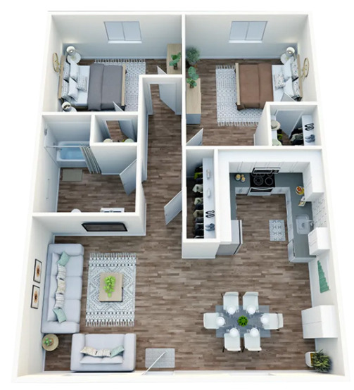 Apartment Model: 2X1$1,2762 Bedroom, 1 Bath, 927 sq ftAvailable November 21, 2025![]()