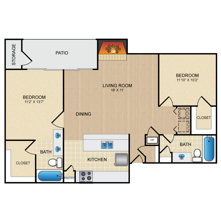 Apartment Model: 2 Bedroom2 Bedroom, 2 Bath, 1122 sq ftAvailable Now![]()