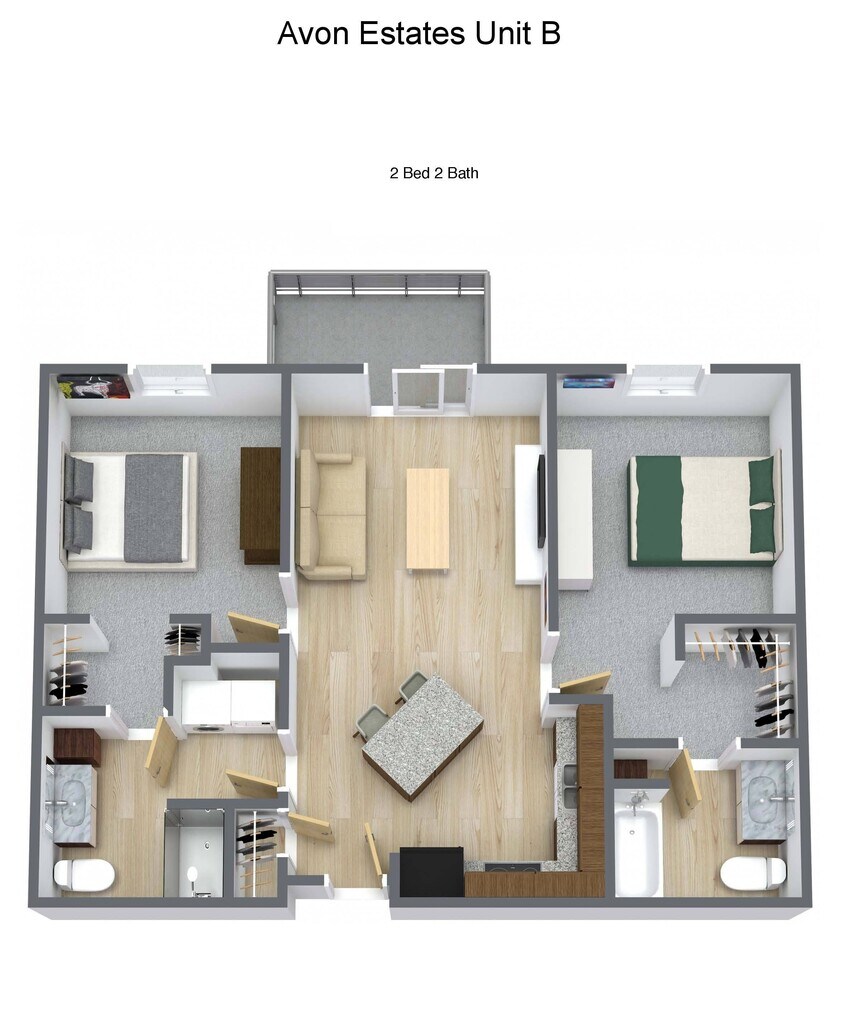 2 Bedroom 1 Bathroom - Floorplan 3 2 Bedroom 2 Bathroom